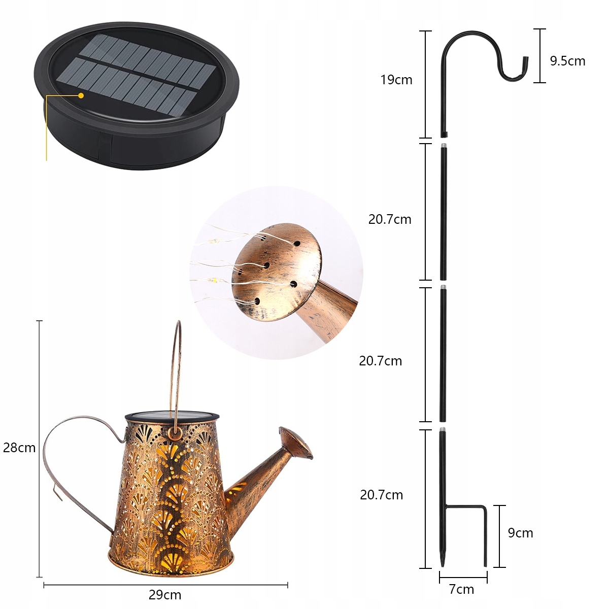 �【Садовый светильник с струящейся водой】 Отштампован из высококачественного железного листа, красивый коричневый цвет снаружи предотвращает ржавчину, подходит для использования на открытом воздухе. Полый дизайн подчеркивает сияющую красоту. Фонарь из лейки также можно разместить на земле в качестве садового фонаря для освещения световых дорожек.