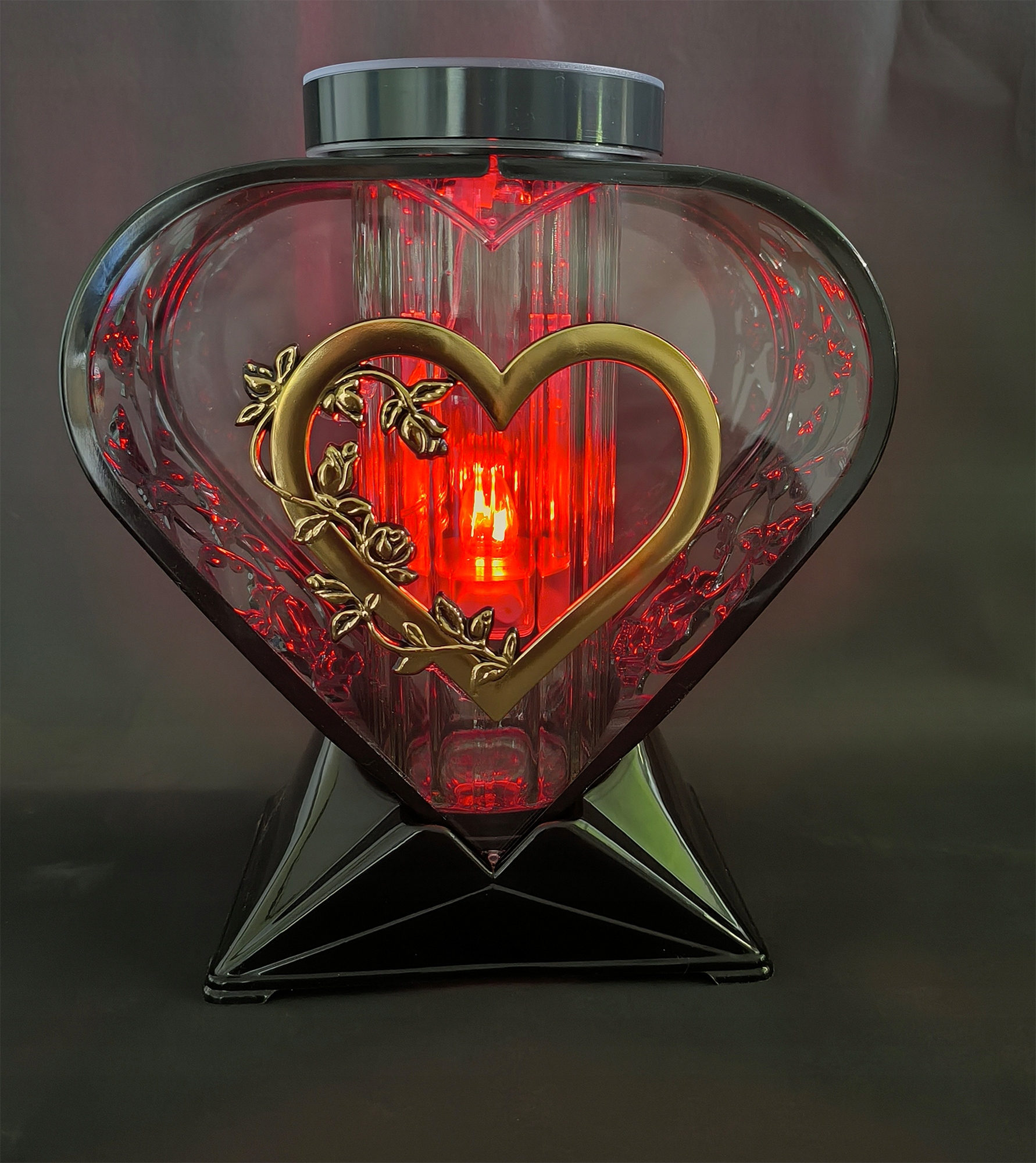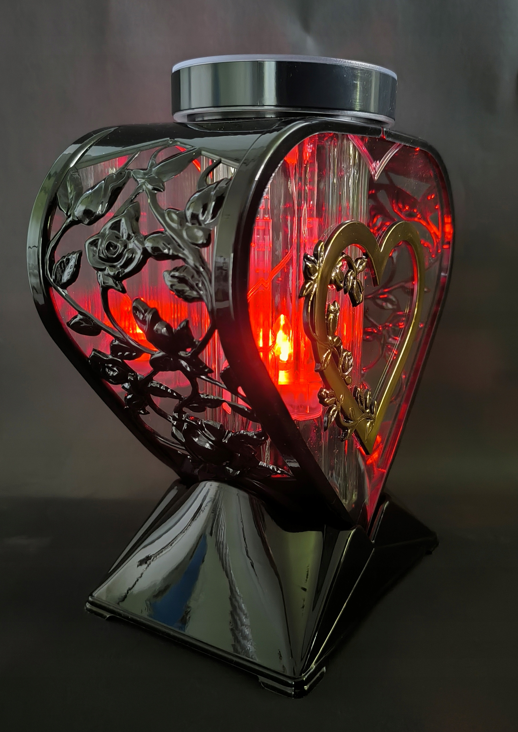 Жирный ланант. Большая солнечная панель была установлена в капюшоне свечи, которая заряжает аккумулятор «пламени». Черный корпус свечей был сделан из пластика и закончено глянцевым. Дайд свечей расположен на регулируемых направляющих и сияет вокруг часов, также в течение дня.