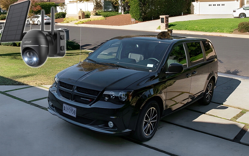 IEGEEK Внешняя солнечная камера Wi -Fi Ротация IP 4X Zoom Full HD 2K 3MP на батареях 9000 мАч (2048 x 1536p) 32 ГБ карта h1>