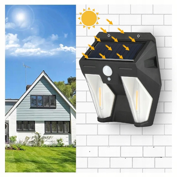 - Солнечная светодиодная настенная лампа с движением и сенсором в сумерках имеет 3 режима освещения