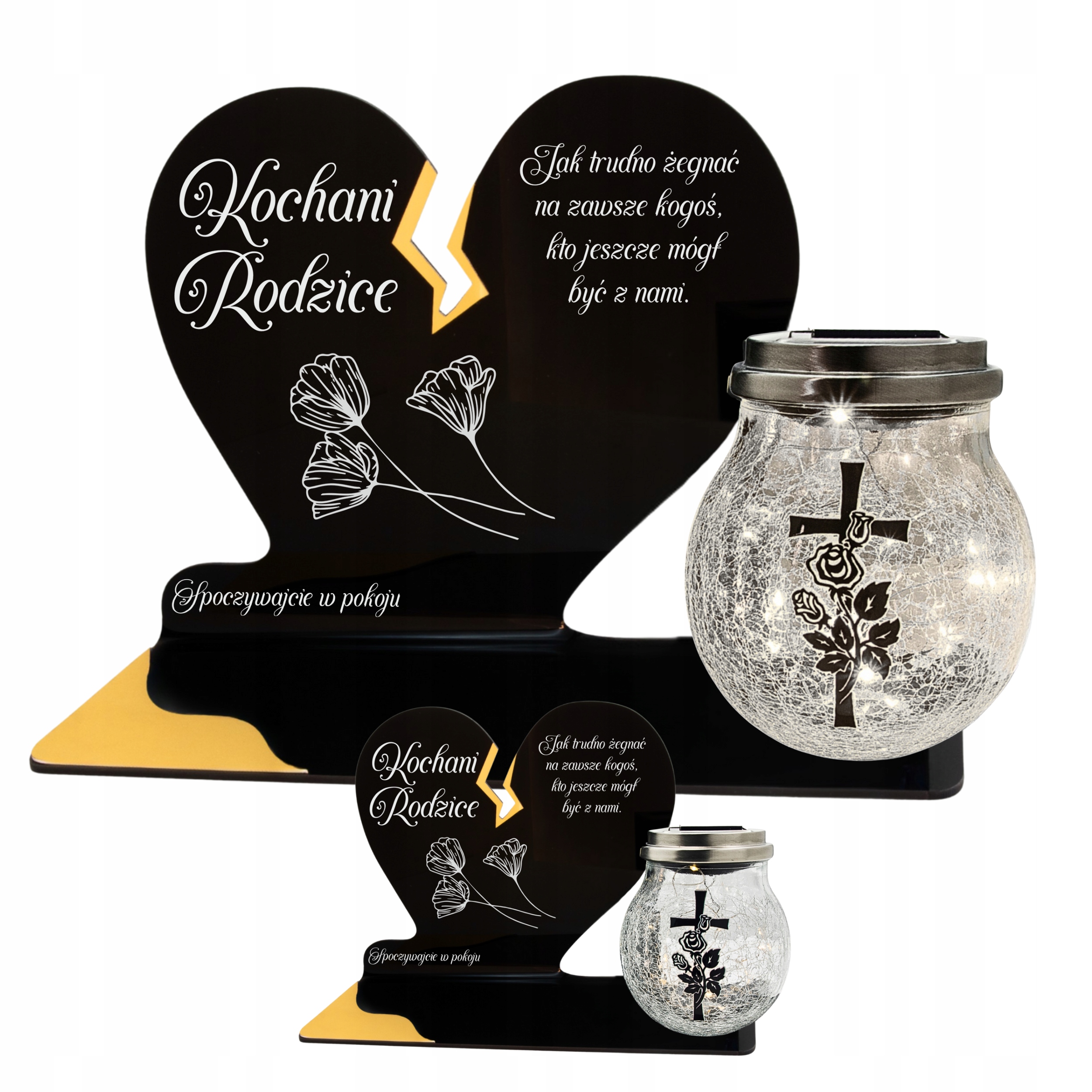 Уникальная могильная свеча в виде черного сердца с нежной золотой трещинкой – символ любви и памяти, который никогда не гаснет. Элегантная форма в сочетании с современным решением в виде большого солнечного светодиодного светильника делает весь вид чрезвычайно эффектным и трогательным.