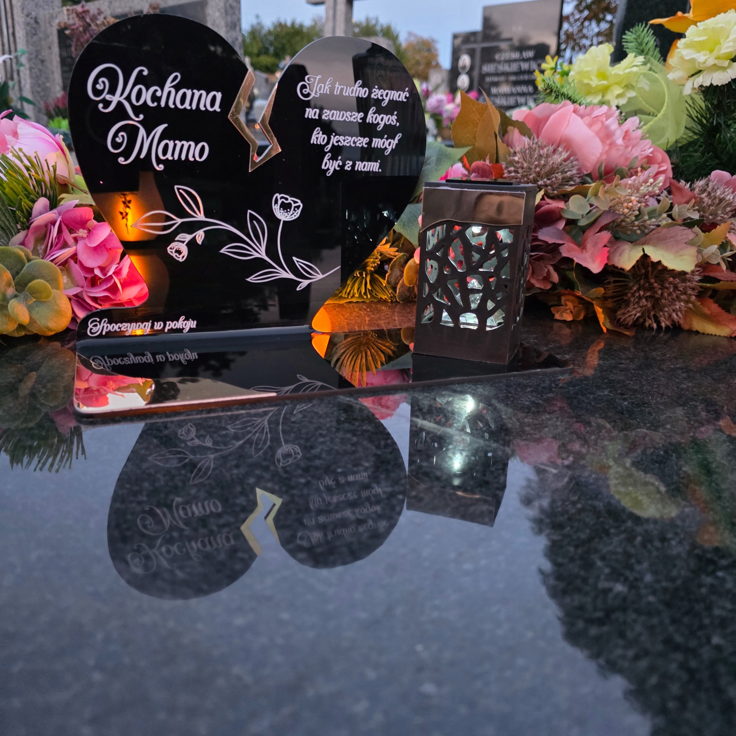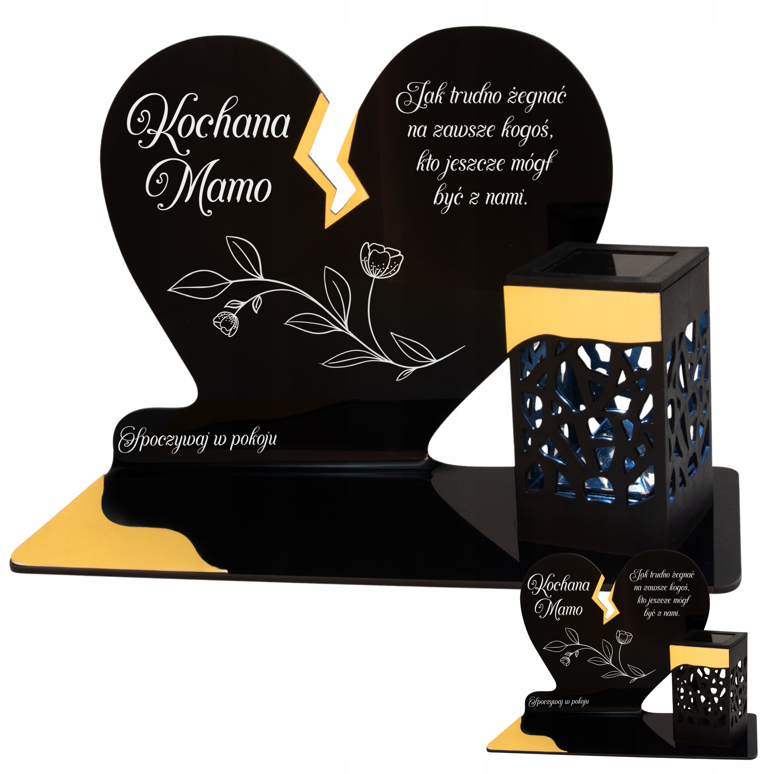 Уникальная могильная свеча в виде черного сердца с нежной золотой трещиной – символ любви и памяти, который никогда не гаснет. Элегантная форма в сочетании с современным решением в виде солнечного светодиодного светильника выделяет свечу среди традиционных моделей, являясь при этом трогательным и практичным дополнением мемориала.