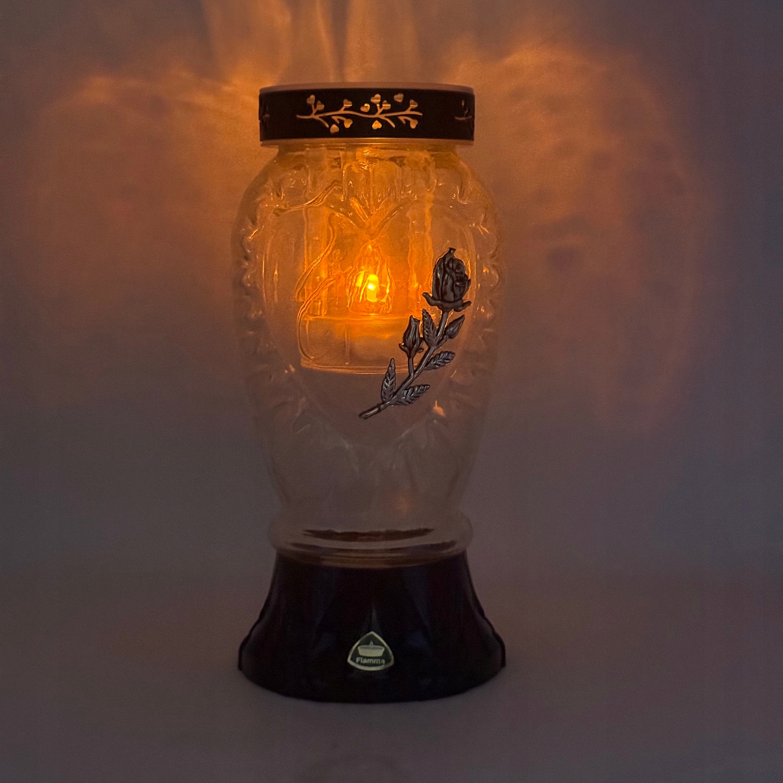 Солнечная свеча для могильного черного стеклянного фонаря с розой