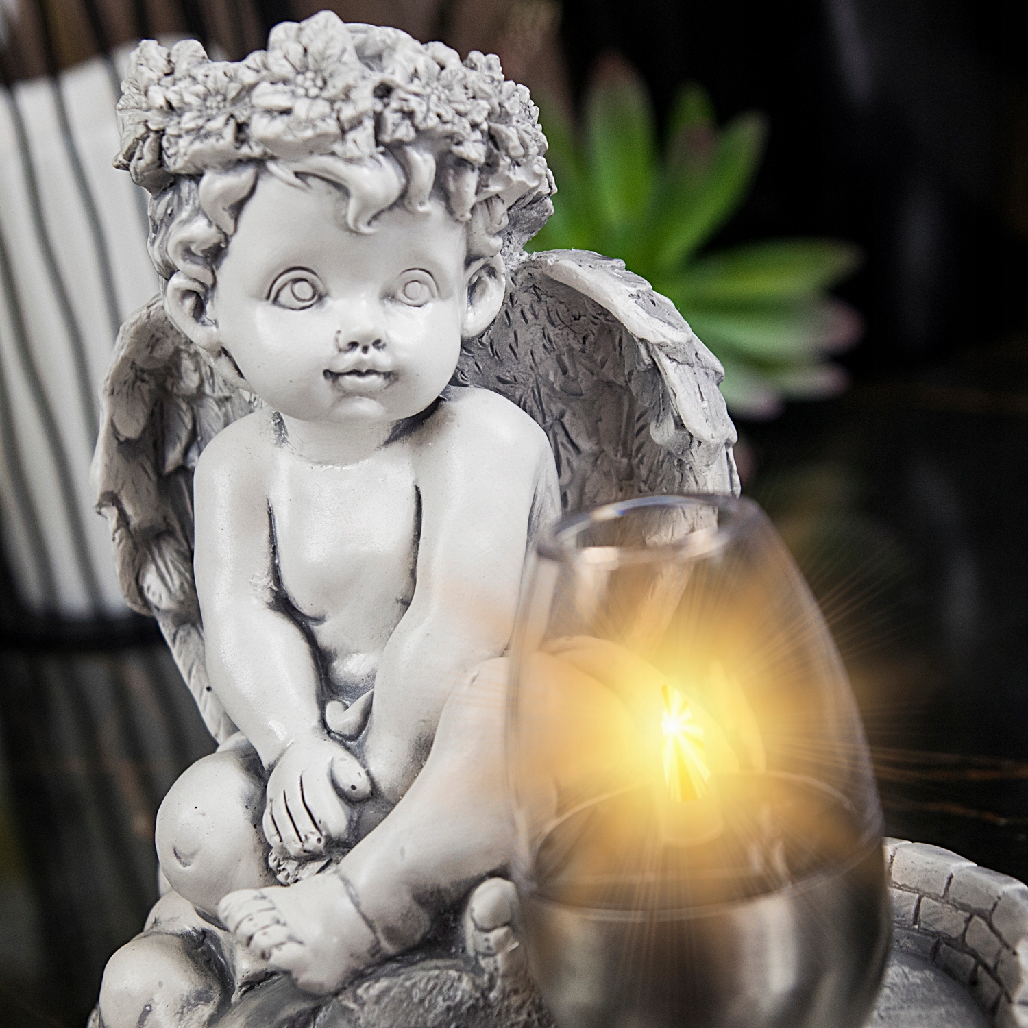 ➡️ Фантастически оформленная гипсовая фигурка с солнечным светом, которая прекрасно украсит любой сад или надгробие