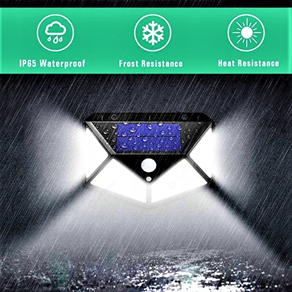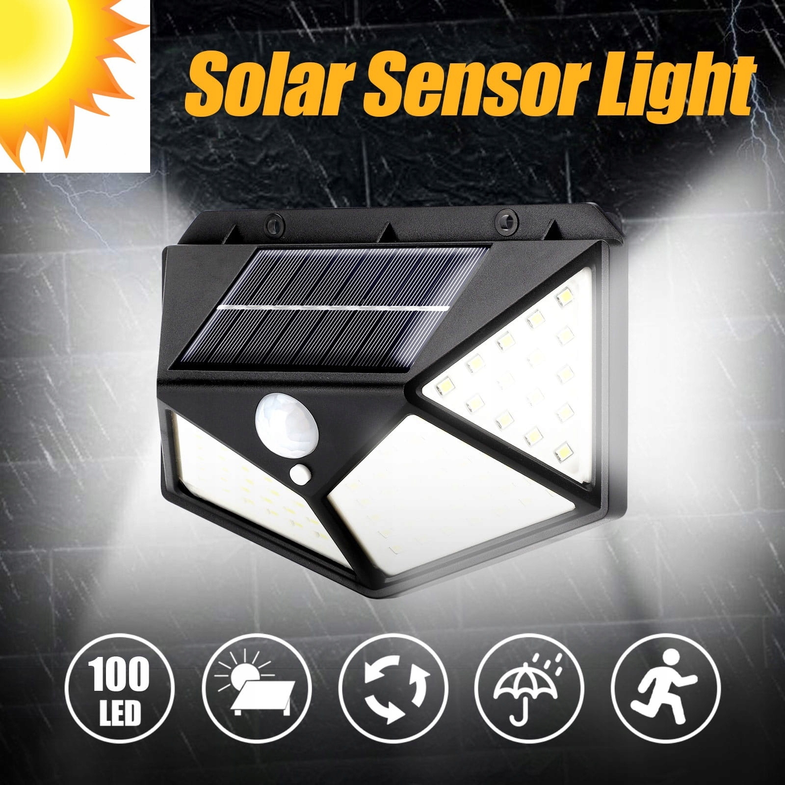 Солнечная лампа100 LED с датчиком сумерек и чувствительнымдатчиком движения и боковыми светодиодами по бокам фонарядополнительное освещение 270 градусов р>