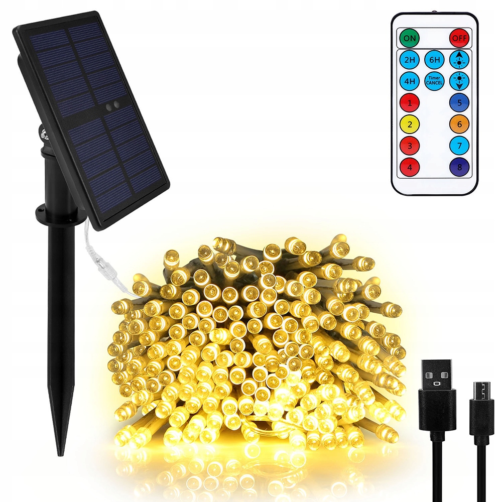 * Новый и усовершенствованный дизайн с двойным источником питания: светодиодная гирлянда с питанием от солнечной батареи или от USB, 30 м 200 светодиодов, теплый белый свет , как для внутреннего, так и для наружного использования.