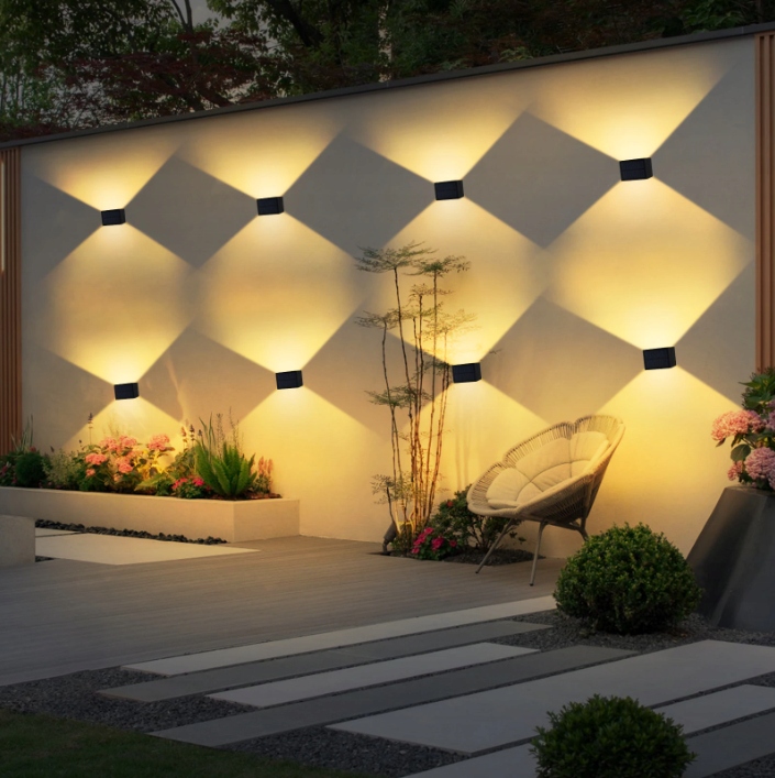 Солнечная светодиодная настенная лампа вниз с регулировкой угла освещения белый теплый