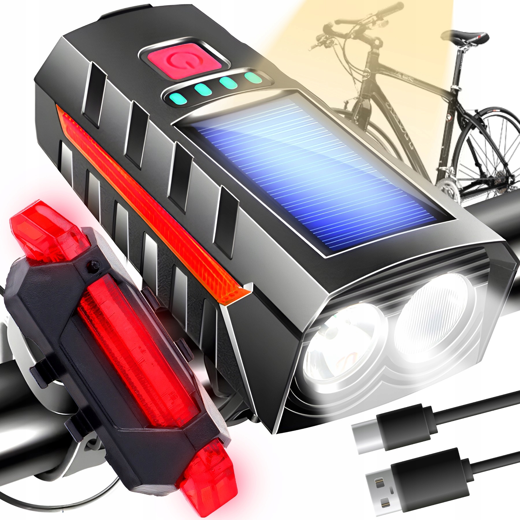 СОЛНЕЧНАЯ ВЕЛОСИПЕДНАЯ ЛАМПА ПЕРЕДНЯЯ ЗАДНЯЯ СВЕТОДИОДНАЯ ФОНАРЬ ДЛЯ ВЕЛОСИПЕДНОГО РУЛЯ + ГРУГОВЫЙ СИГНАЛ