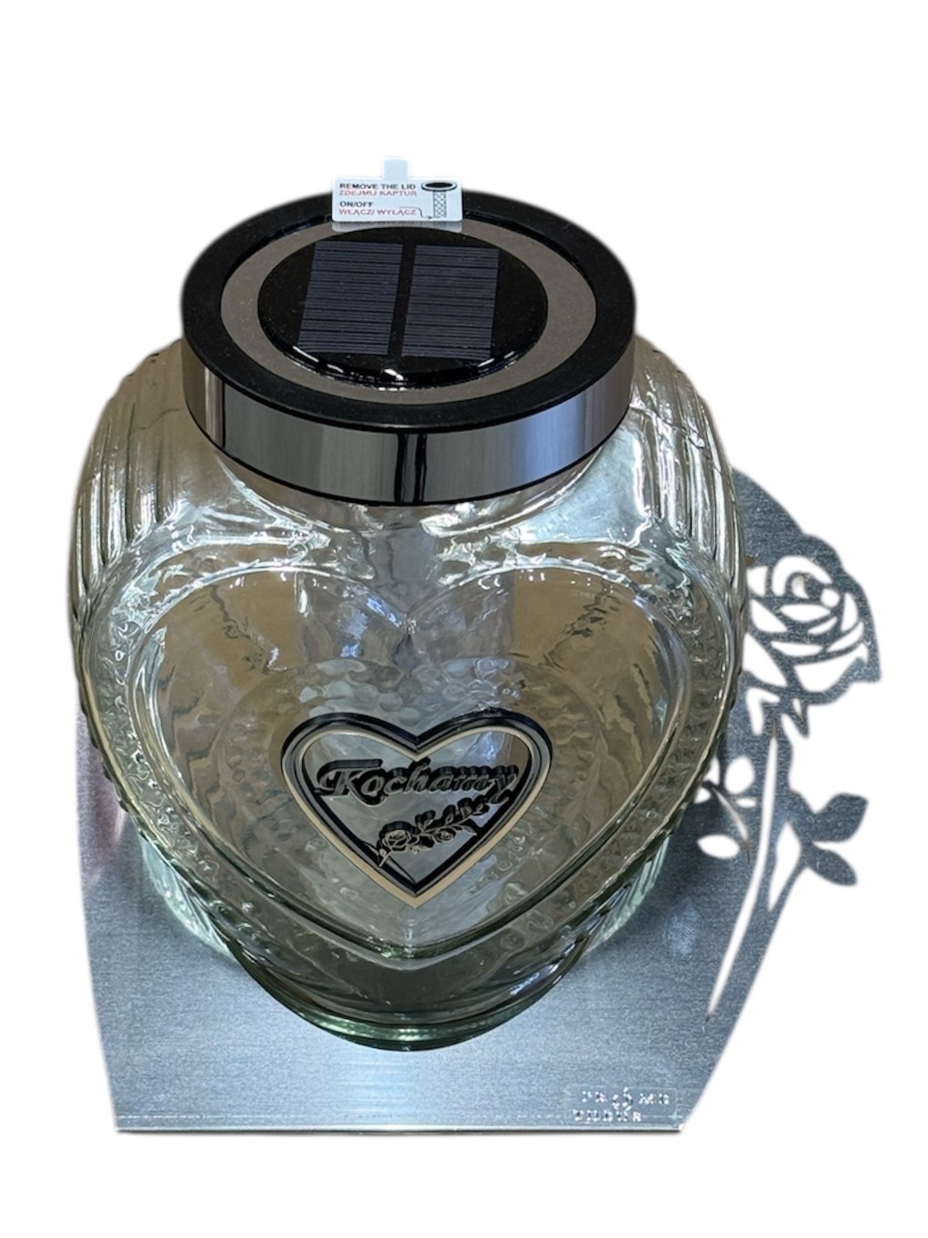 Элегантная и современная соляная свеча в форме сердца с надписью, которую мы любим. Благодаря встроенной солнечной панели, она не требует батарей или патронов - она заряжается в течение дня и автоматически сияет после наступления темноты. Это практическое, экологическое и поддержанное решение, которое идеально подходит для гробницы любимых.