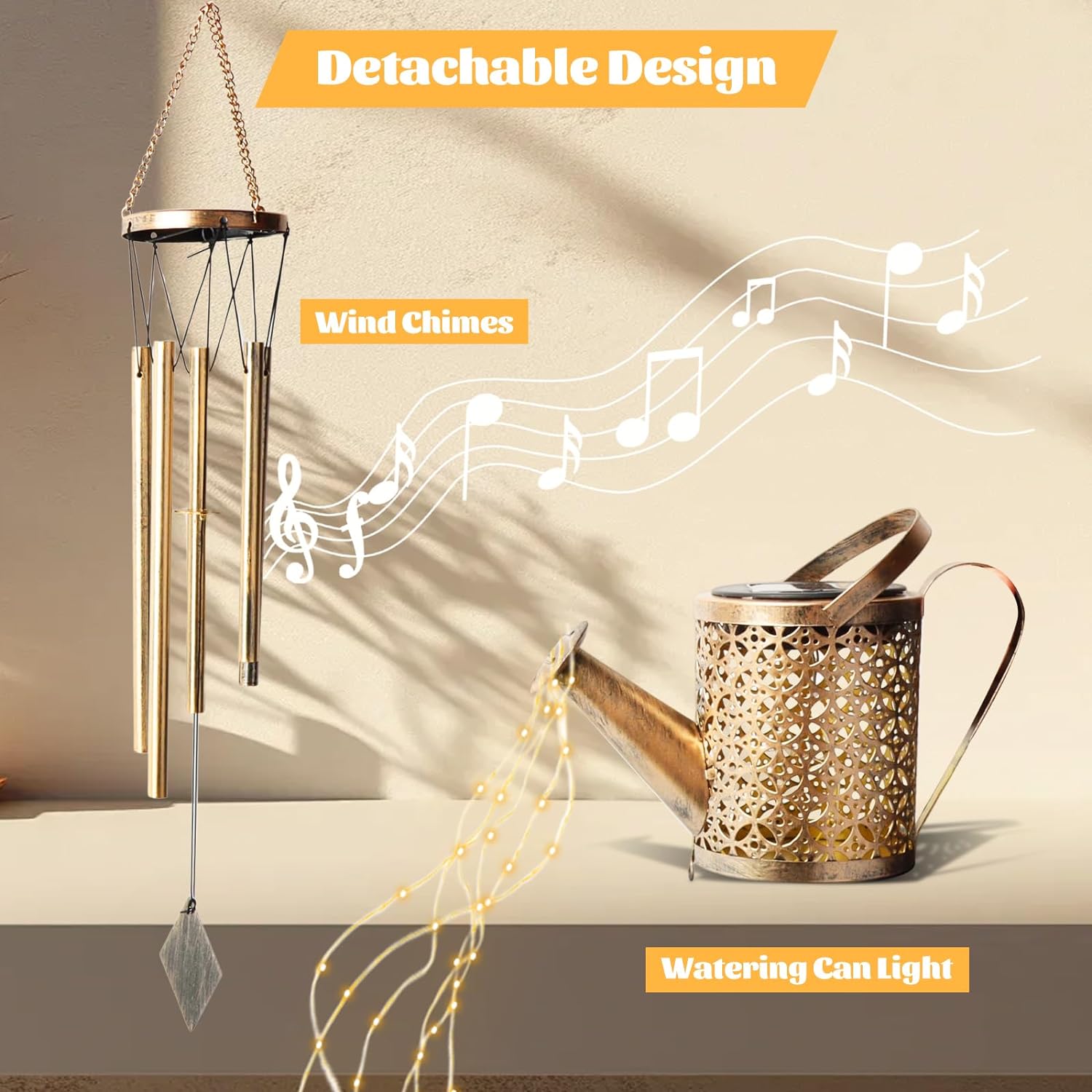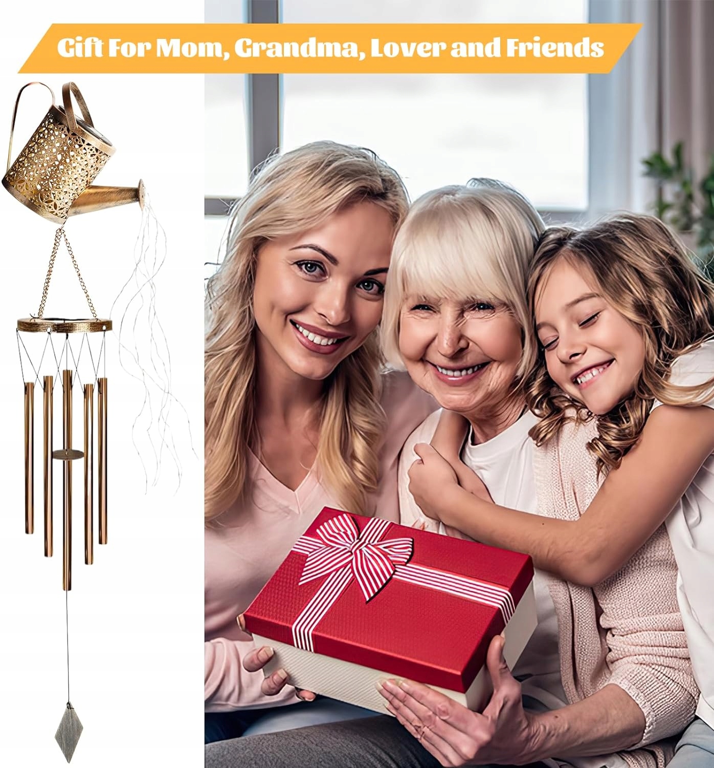 Hiyorsoa Solar Wind Shimes для сада, солнечная водопоя банка с ветром на открытые солнечные светильники металлические ветры с подвесным крюком для садового дворика балкона, подарки на день рождения для женщин -мамы