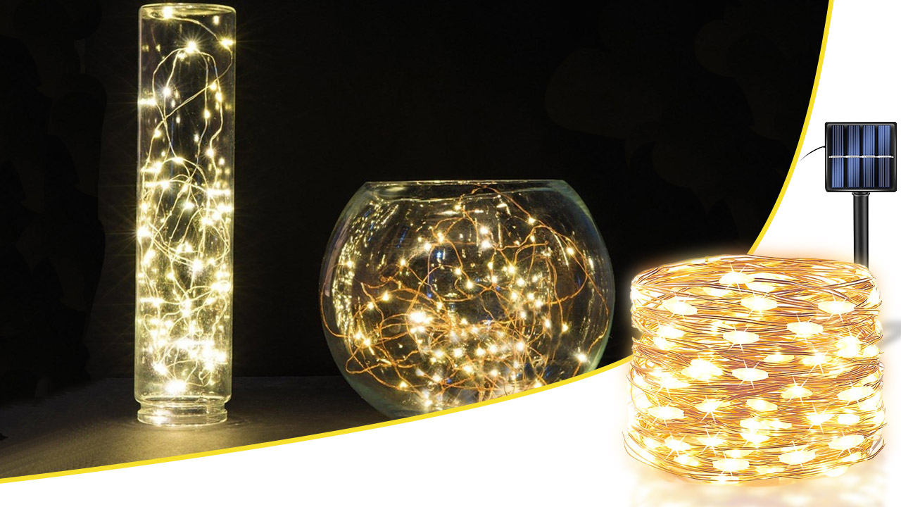 СОЛНЕЧНЫЕ СВЕТИЛЬНИКИ WARM WHITE 100 LED 12 M РОЖДЕСТВЕНСКИЕ ВОДОНЕПРОНИЦАЕМЫЕ НАРУЖНЫЕ
