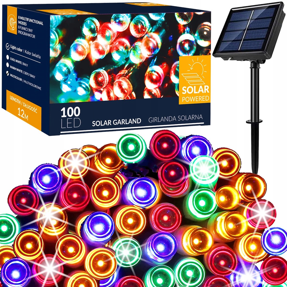 СОНЯЧНІ РІЗДВЯНІ СВІТЛІ 100 LED 12м РІЗНОКОЛЬОРОВА ГІРЛЯНДА 8 ФУНКЦІЙ