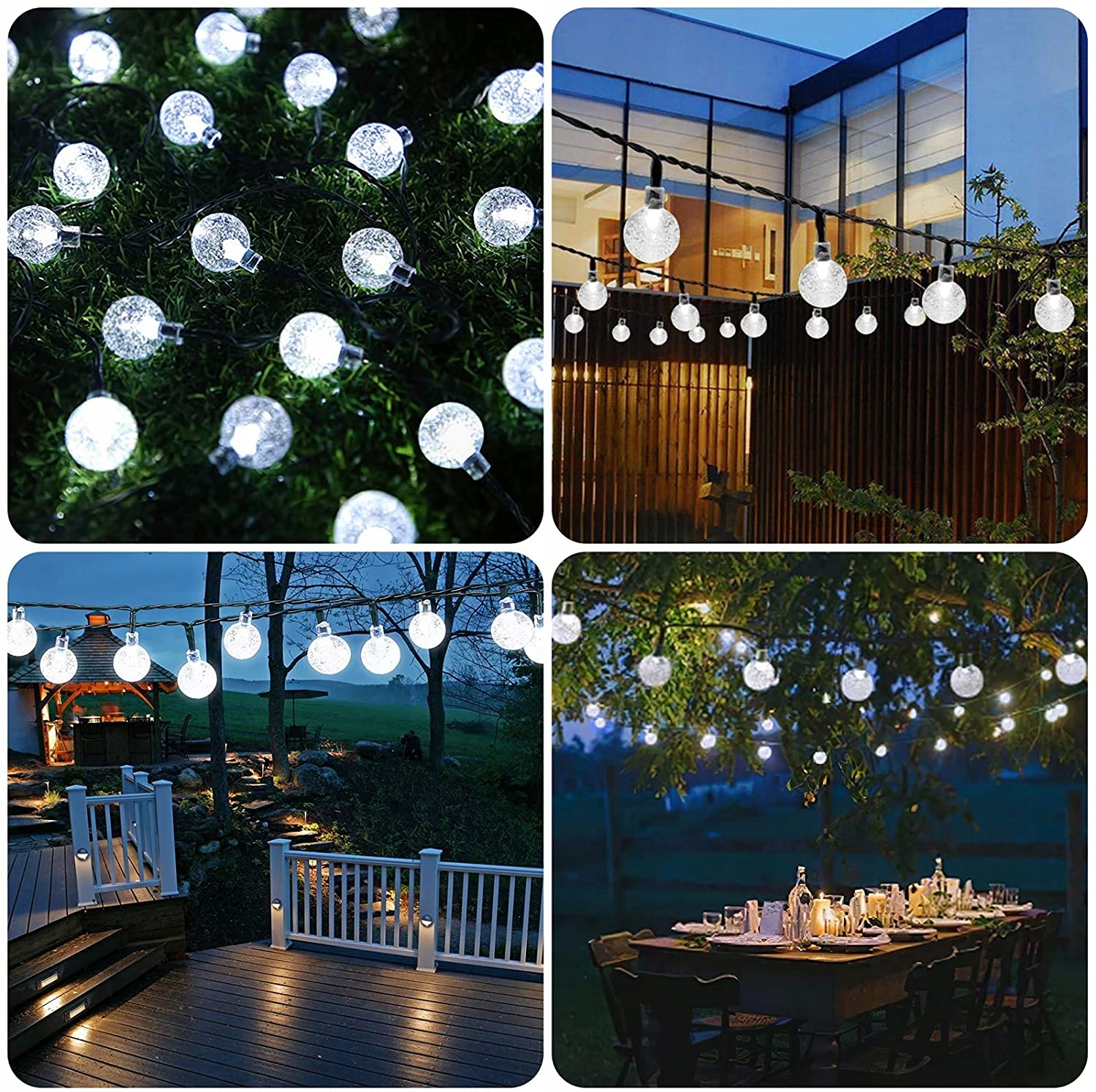 ✅ 50 светодиодных фонарей в форме шаров теплого холодного белого цвета