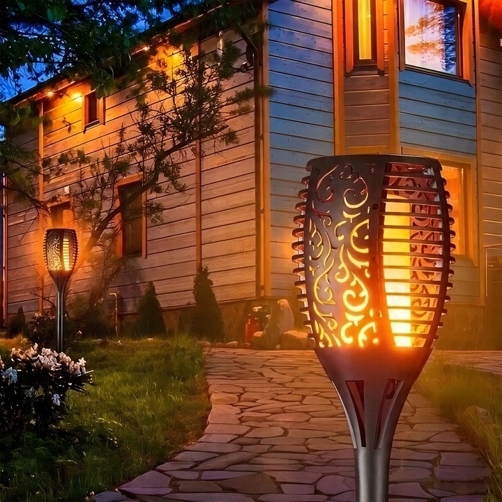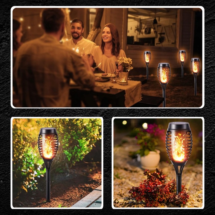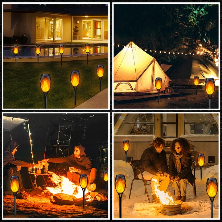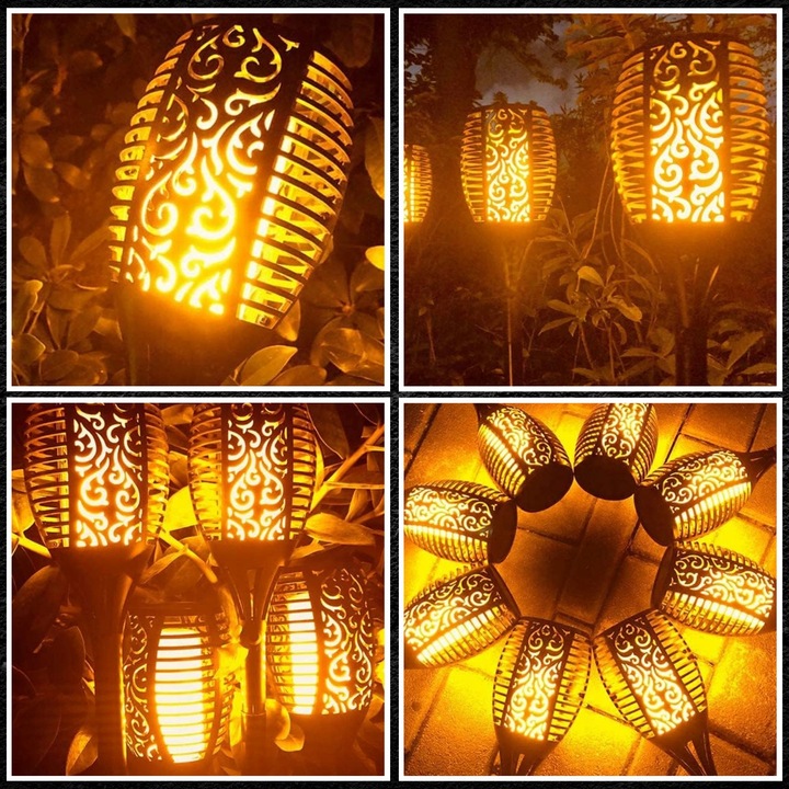 СОНЯЧНІ САДОВІ СВІТИЛЬНИКИ СВІТЛОДІОДНІ ФАКЕЛІ ПОЛУМ'Я ВОГНЯ СОНЯЧНІ ЛАМПИ 4 ШТ.
