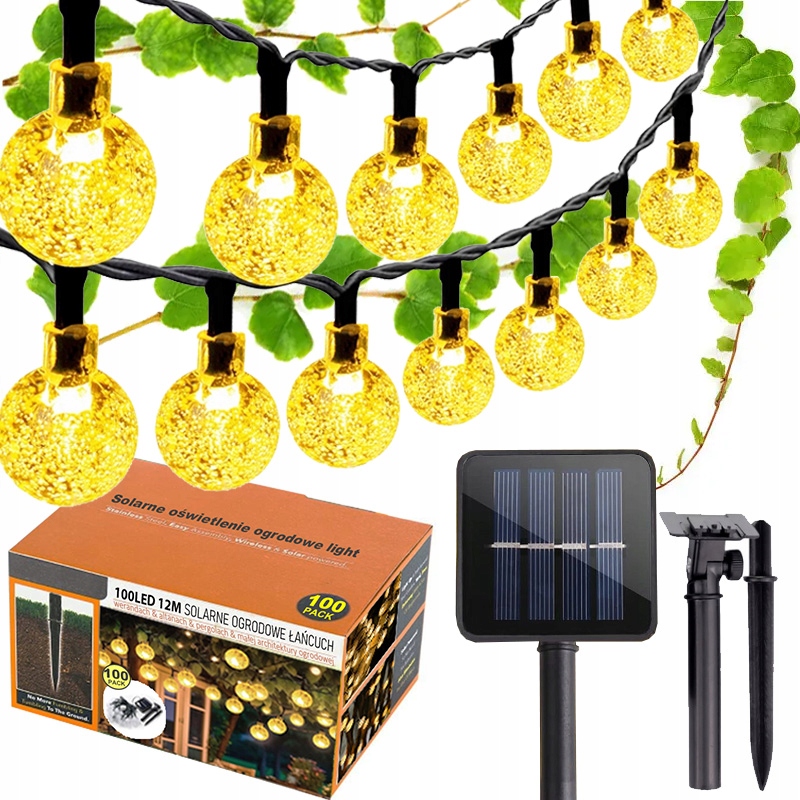 ГАРЛАНДА СОЛНЕЧНЫЕ САДОВЫЕ СВЕТИЛЬНИКИ 100 СВЕТОДИОДНЫХ ШАРИКОВ 12М
