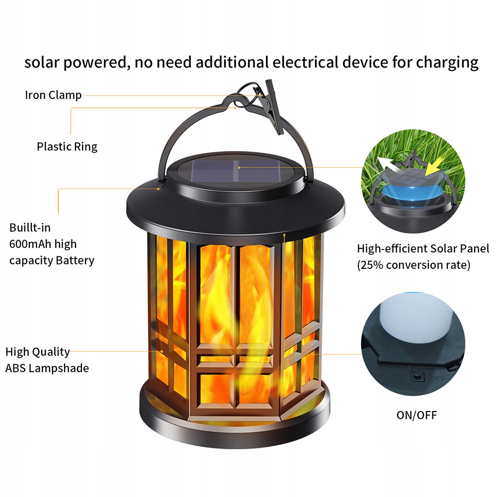 Четкий и уникальный дизайн: наши внешние солнечные лампы имеют классический и современный дизайн, который является эстетическим. Внешняя висящая лампа солнечная с улучшенной теплой белой светодиодной светом 3200K может создать теплую и гармоничную атмосферу! Наши солнечные лампы введут тепло и ясность в саду, внутренний дворик, дорожки, обеденный стол или двор, создавая уютную и приятную атмосферу мероприятия.