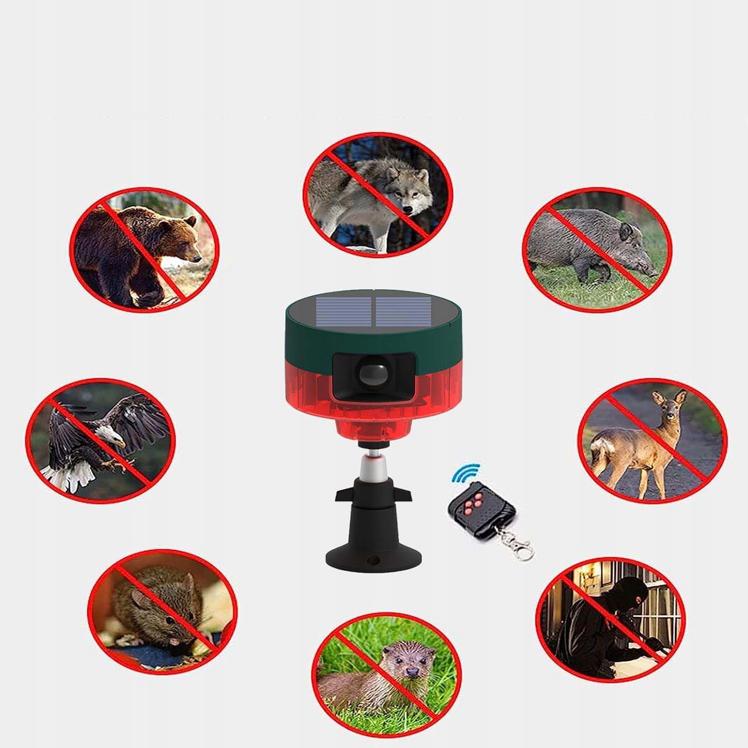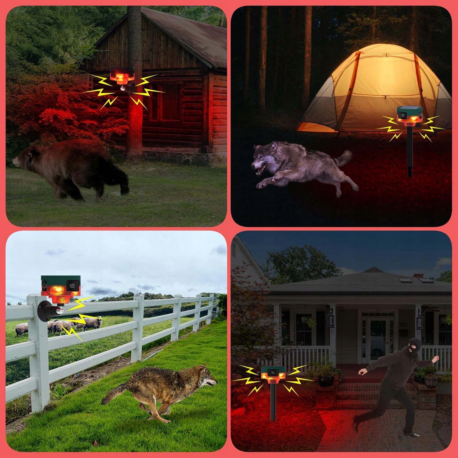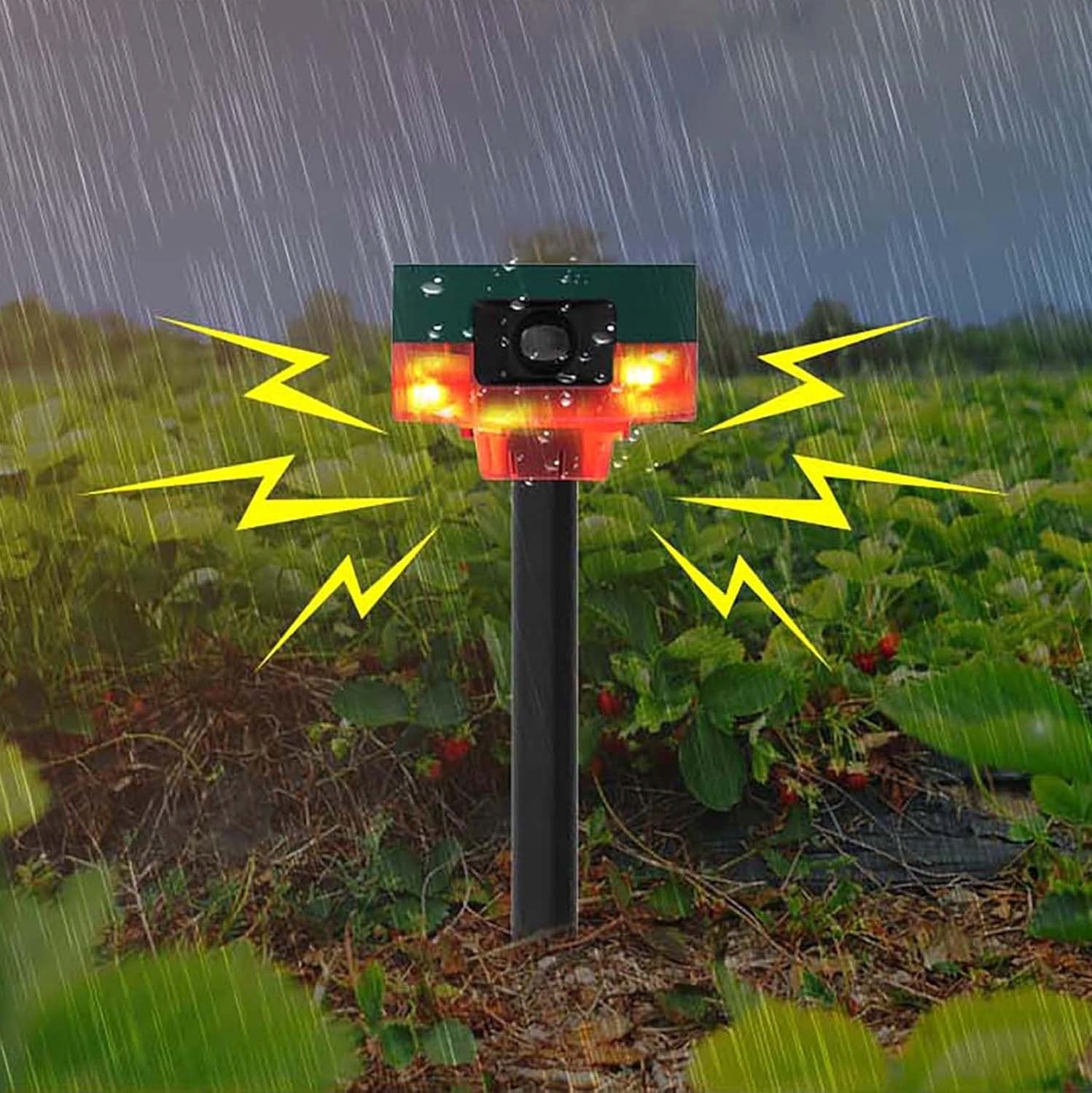 💎💎 Последний дизайн Использование внутри и снаружи: Установки могут быть размещены на земле или столе на ферме снаружи, в саду или в комнате, чтобы отпугнуть злоумышленников. Набор включает в себя USB -зарядный кабель для облачных дней.