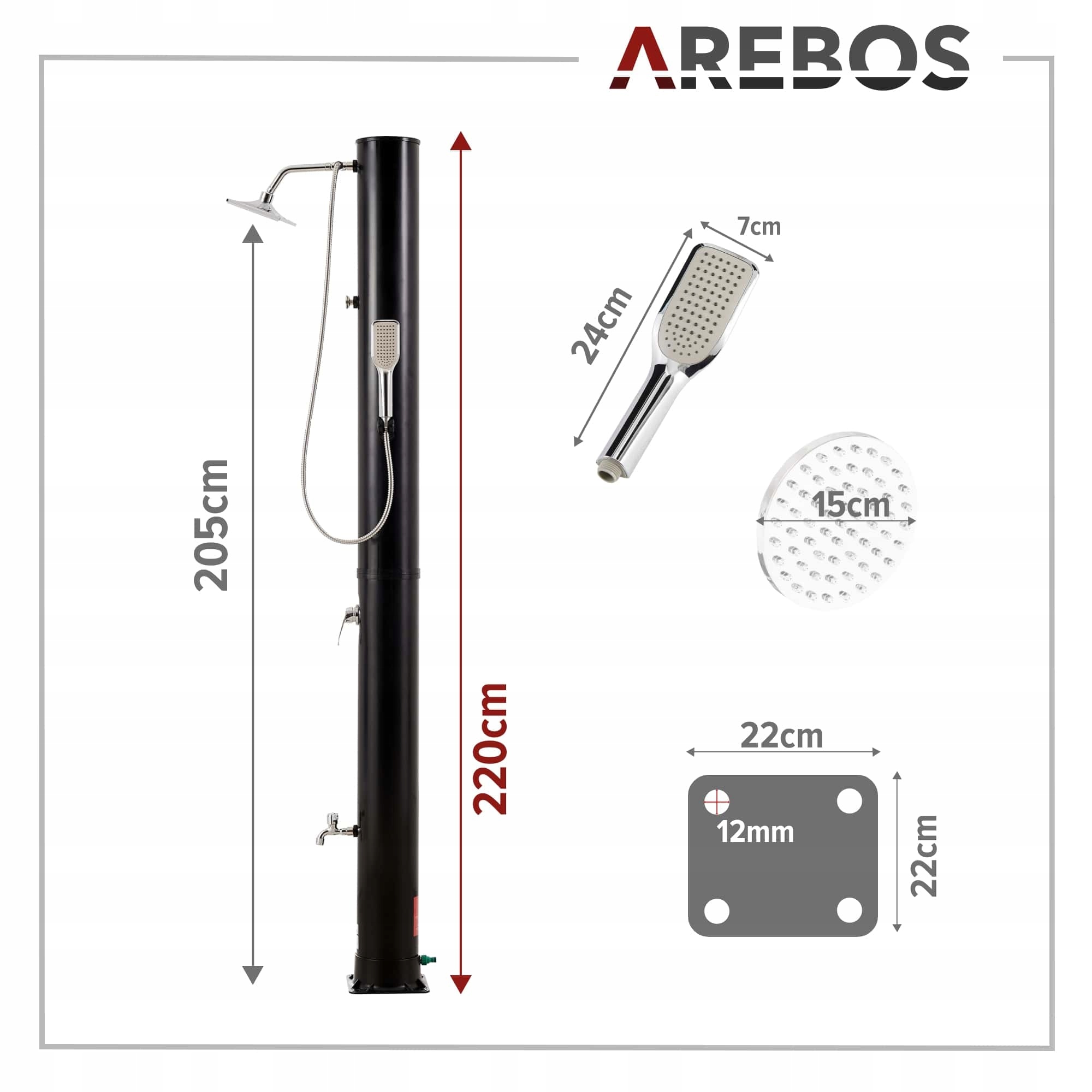 Душ Arebos Solar 40 л Премиум черный с антрацитовой защитой