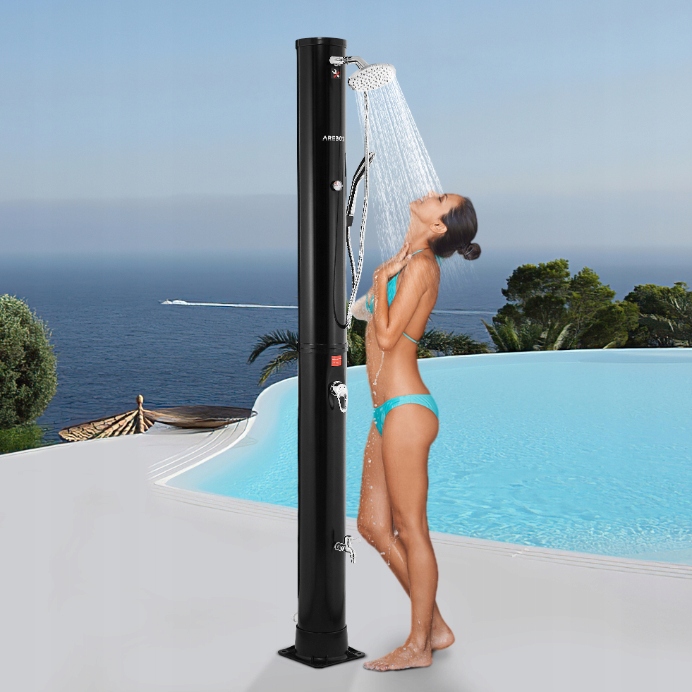 [ГИБКОЕ ПРИМЕНЕНИЕ] Душ можно использовать в саду, на террасе, в бассейне и даже в походах и т. д. Воспользуйтесь возможностью охладиться в любое время и сохранять прохладу в течение всего лета. Поворотная насадка для душа, а также ручной душ и ножной смеситель — это еще одна особенность нашего солнечного душа. Прочное алюминиевое основание обеспечивает долгое и безопасное удовольствие под душем.