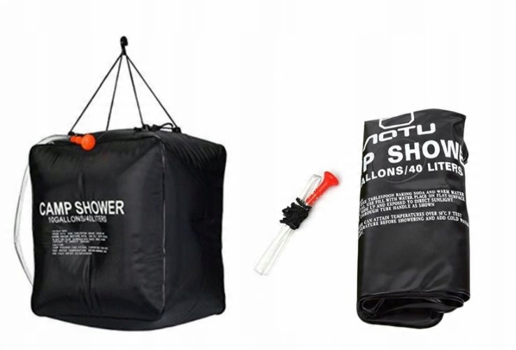 Подвесной походный душ емкостью до 40 литров. Идеально подходит для любого похода, поездки и участка. Незаменим там, где использование проточной воды невозможно. Специальный материал позволяет нагревать воду до приятной температуры.