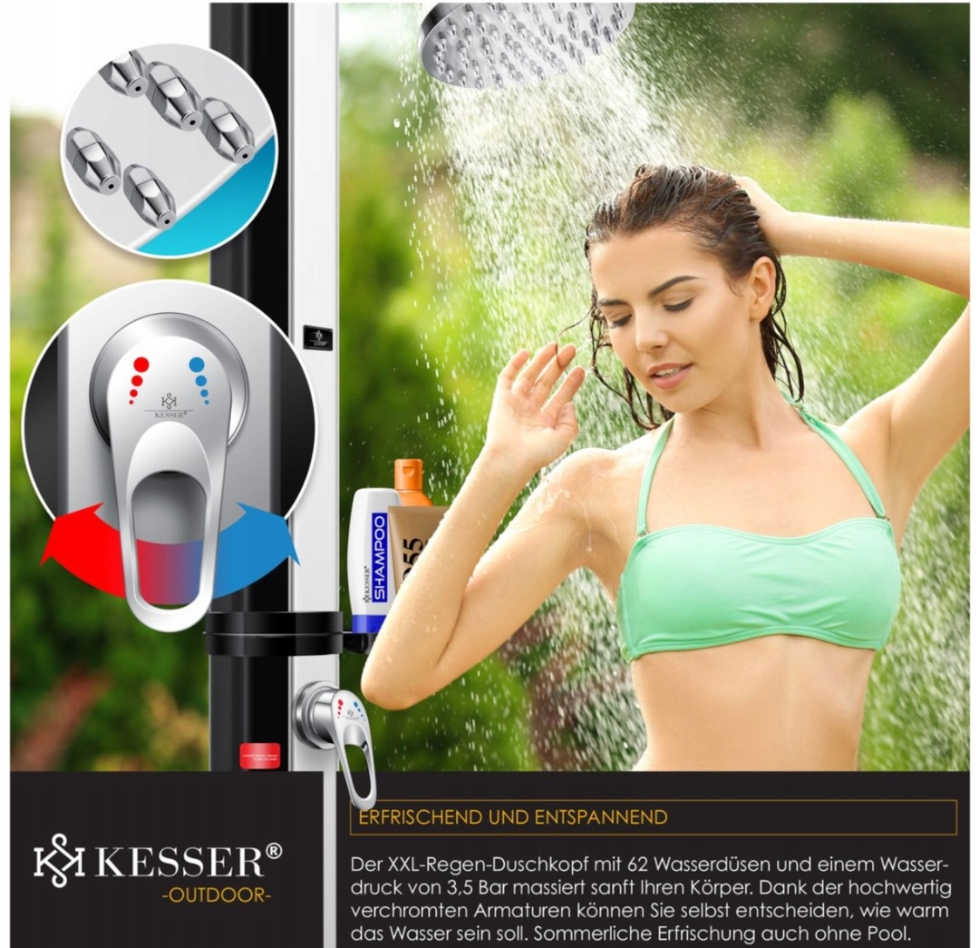 Солнечный душ KESSER®, объем 35 литров, садовый душ, с защитной крышкой, горячая вода, макс. 60 °C, без подключения к электросети, душ для бассейна, кемпинг, тропический душ и кран, подключение шланга п>