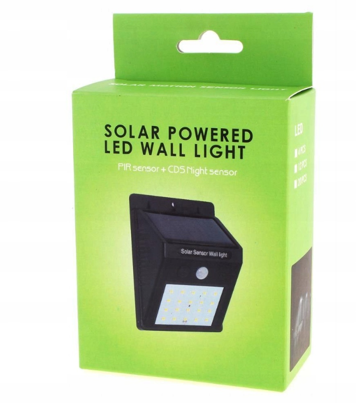 - СПЕЦИФИКАЦИЯ – питание от солнечного света + внутренний аккумулятор; класс герметичности IP 44; 20 светодиодов; размеры (длина/ширина/высота): 12,5/9,5/5 см;