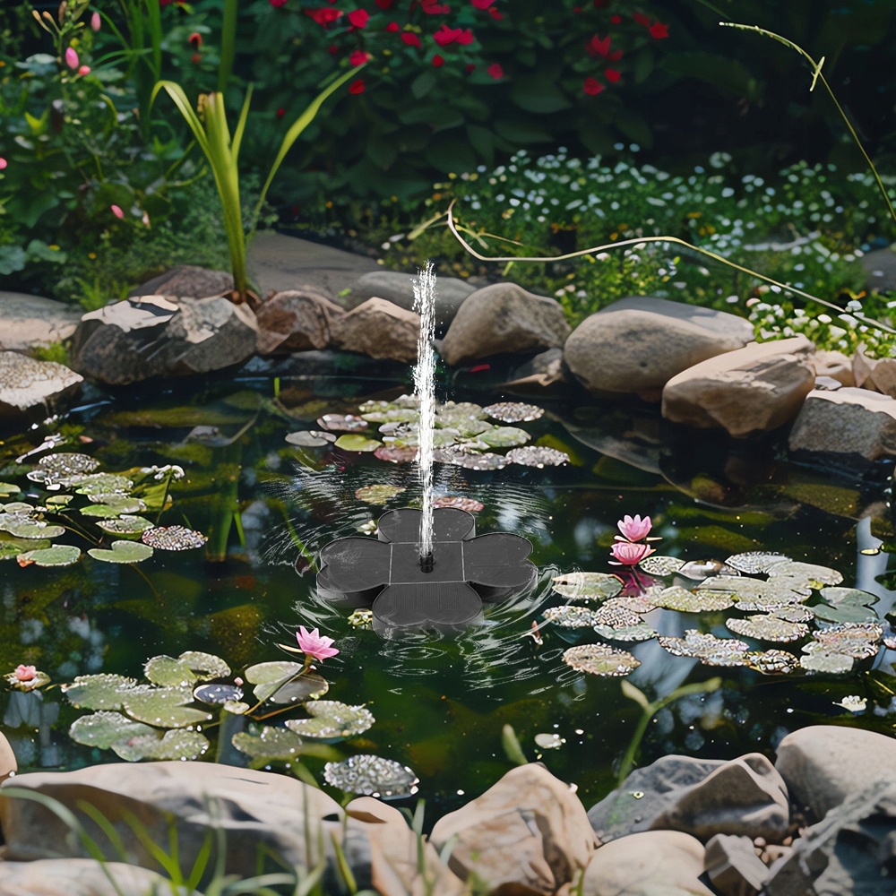 Уникальная форма четырехлистного клевера солнечного фонтана идеально спроектирована и более привлекательна, чем традиционные круглые фонтанные насосы. Насос для фонтана на солнечной энергии имеет восемь форсунок, которые можно регулировать и заменять по своему вкусу, создавая множество красивых сцен распыления, которые украсят ваш внутренний дворик.