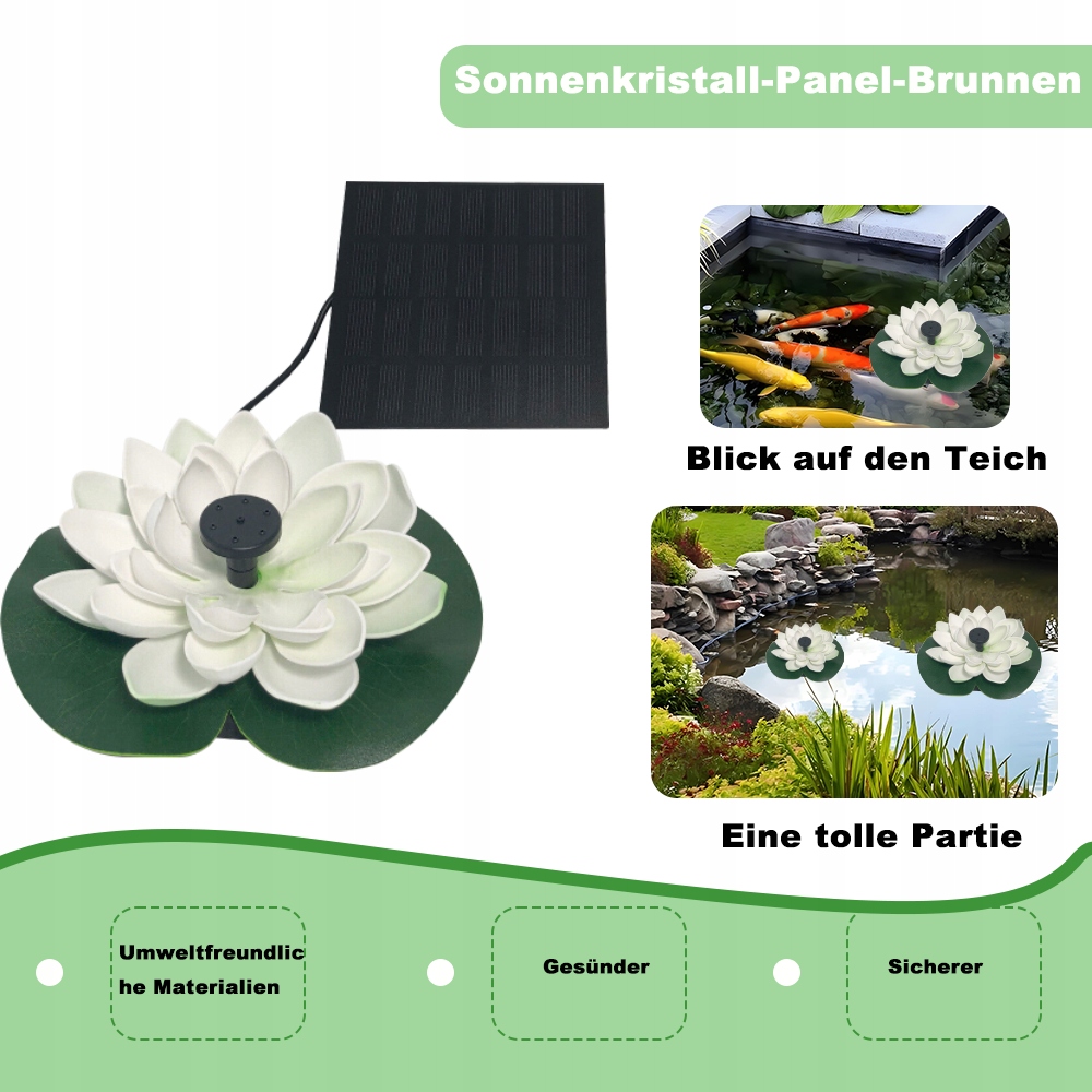 - [многофункциональный] Этот экологически чистый солнечный насос идеально подходит для птиц, аквариумов, небольших бассейнов, бассейнов, садов и циркуляции воды. Ваш сад, безусловно, привлечет внимание прохожих. Украшение в виде солнечного насоса сделает ваш сад действительно интересным.