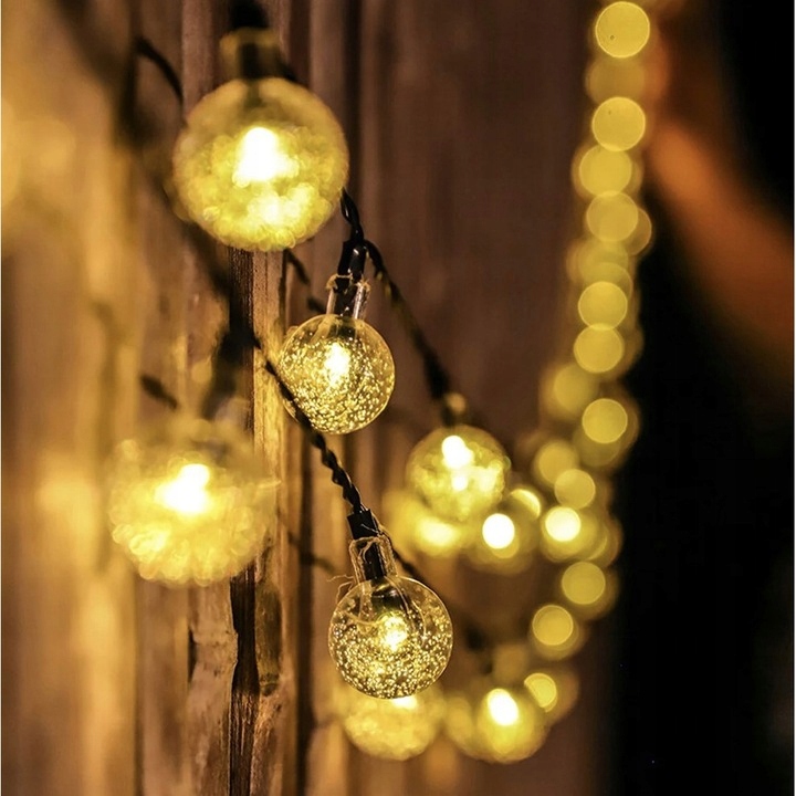 - Высококачественное -солярное светодиодную гирлянду-это элегантное и функциональное украшение, которое, безусловно, добавит очарование в любое пространство. состоит из 50 пуль , каждая из которых состоит из высококачественного полистирола. Этот материал не только долговечен, но и эстетический благодаря тому, что гирлянда является украшением, даже когда оно не включено. Каждый шарик слегка прозрачен и содержит небольшие пузырьки воздуха , которые добавляют к нему уникальный характер. Эти пузырьки не только обогащают внешний вид пуль, но и эффективно отвлекают свет , когда гирлянда включена, создавая приятную, теплую атмосферу. Благодаря Dusk Sensor , гирлянде без необходимости включить его, начинает сиять, как только темнота падает .