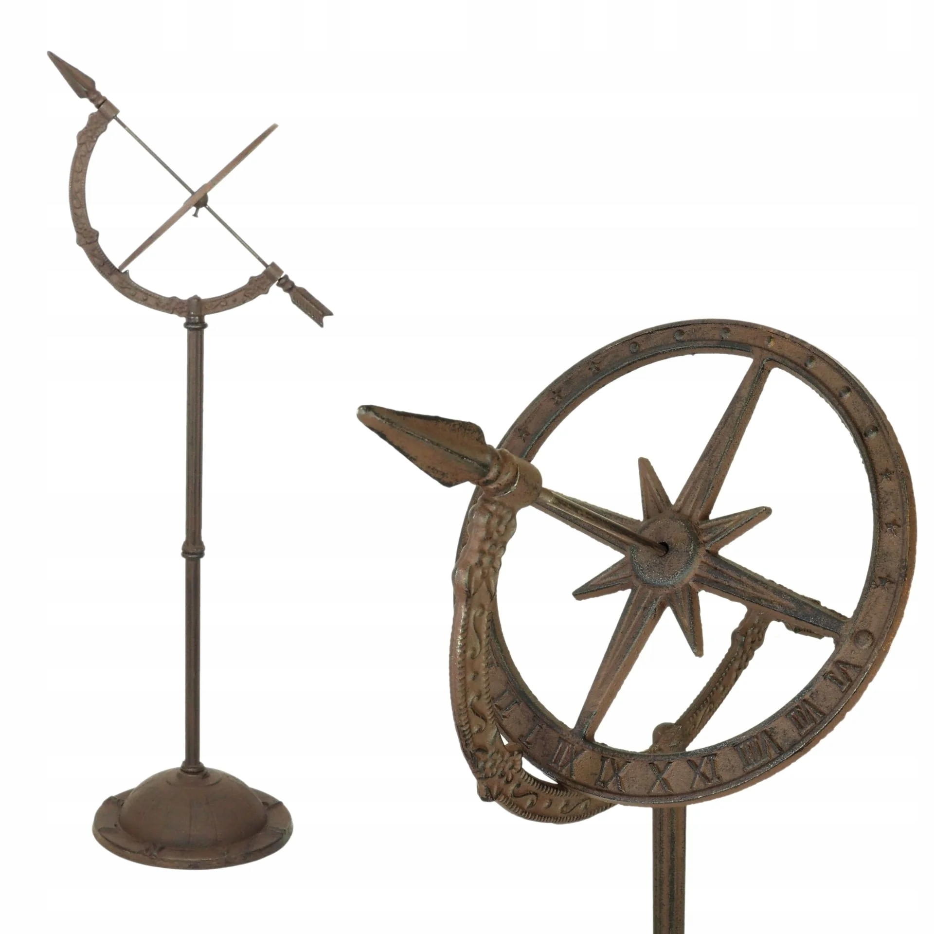 Если вы ищете интересные украшения для своего сада, обратите внимание на наши простые солнечные часы. Скульптура выполнена с большим вниманием к деталям, поэтому выглядит очень интересно. Циферблат украшен декоративными звездами и римскими цифрами. Вся конструкция изготовлена из высококачественного чугуна, который чрезвычайно прочный. Фигурка тяжелая и массивная, так как весит целых 3 килограмма, поэтому, несмотря на свое стройное строение, она будет твердо стоять на земле. Поверхность сплава отличается специфическим цветом в оттенках земли, поэтому она будет красиво смотреться на фоне сочной зелени вашего сада.