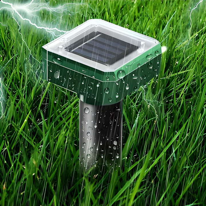 Репуллер издает звуки 24 ч/ д. также работает в облачные дни . Это не вредно для домашних животных и людей. Очень легко в чистоте, мгновенная установка