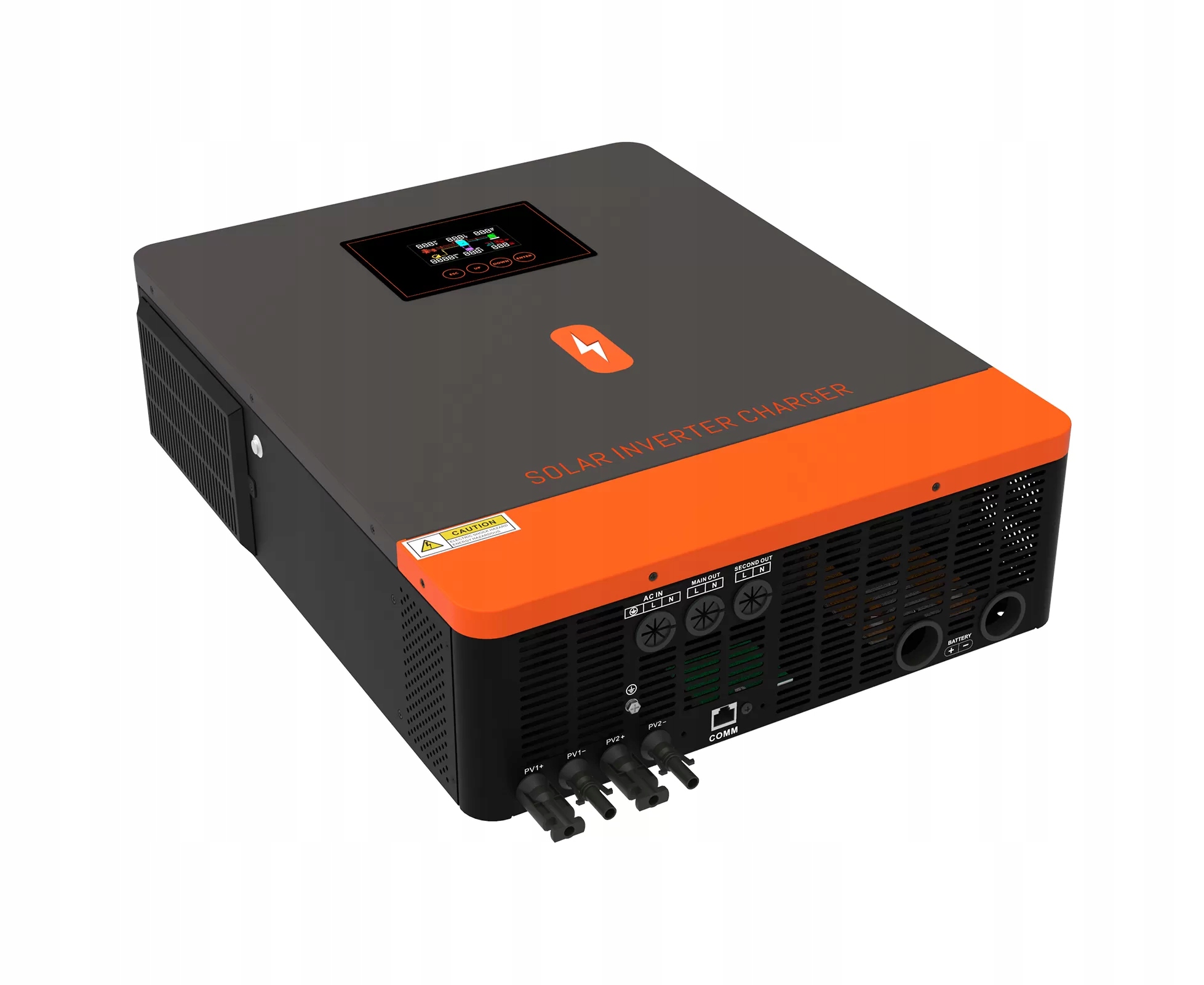 Многофункциональное устройство сочетает в себе функции инвертора и солнечного зарядного устройства. Его универсальный ЖК-дисплей позволяет настраивать: ток зарядки аккумулятора, приоритет переменного/солнечного зарядного устройства и допустимое входное напряжение в зависимости от различных приложений.