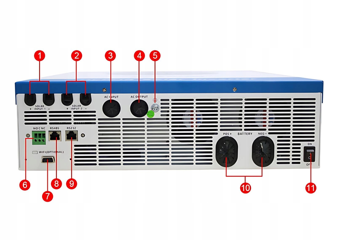 Инвертор Easun Power 11 кВт отличается способностью работать без аккумуляторов и поддерживает несколько приоритетов вывода, таких как SUB, SBU и SUF. Дополнительные функции, такие как оптимизация работы аккумулятора с помощью эквалайзера, продлевают срок службы системы и повышают эффективность.
