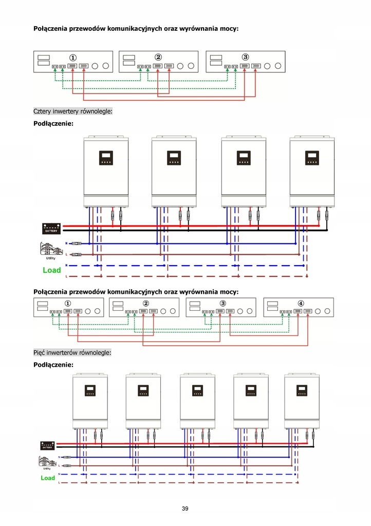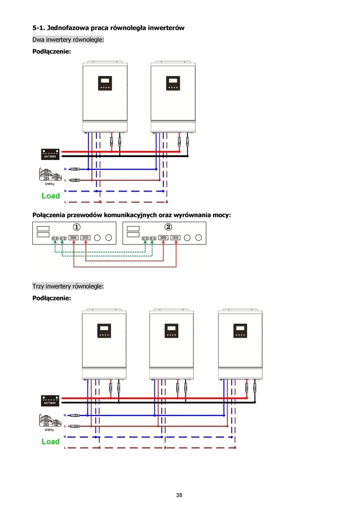- Схемы всех вариантов параллельного подключения инверторов включены во вложение PDF.