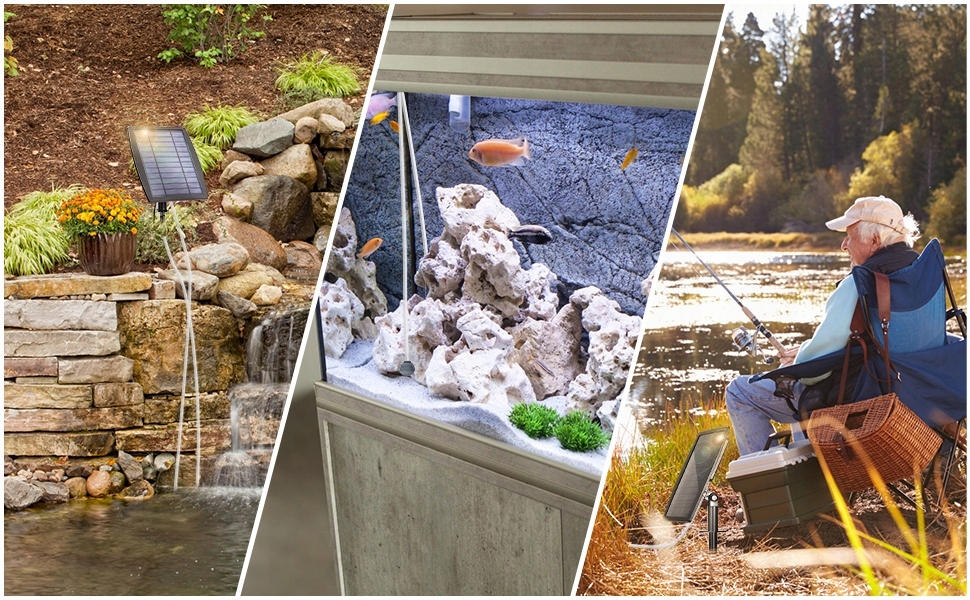характеризуется тихим дизайном, работает тихо и легко установить без проводки. Насос начинает работать в течение нескольких секунд после того, как он подвергал его достаточным солнечным свете.