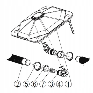 - шланг для соединения фильтрации с длиной 240 см с возможностью разрезания на 2 частях 120 см.
