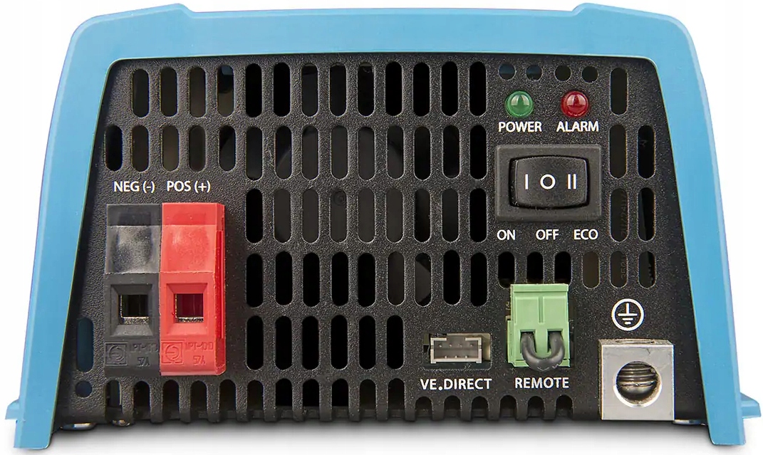 Преобразователи Victron Energy от голландского производителя на данный момент являются лучшим, самым эффективным и престижным брендом аккумуляторных фотоэлектрических устройств. Все преобразователи напряжения этого производителя имеют 5-летнюю гарантию и высокий КПД, что выражается в меньшем энергопотреблении аккумулятора. Каждый преобразователь оснащен режимом ECO, который минимизирует потребление энергии, когда преобразователь не нагружен. Это позволяет устройству не отключаться при неиспользовании напряжения 230В. Разумеется, эту функцию можно включать и выключать вручную.