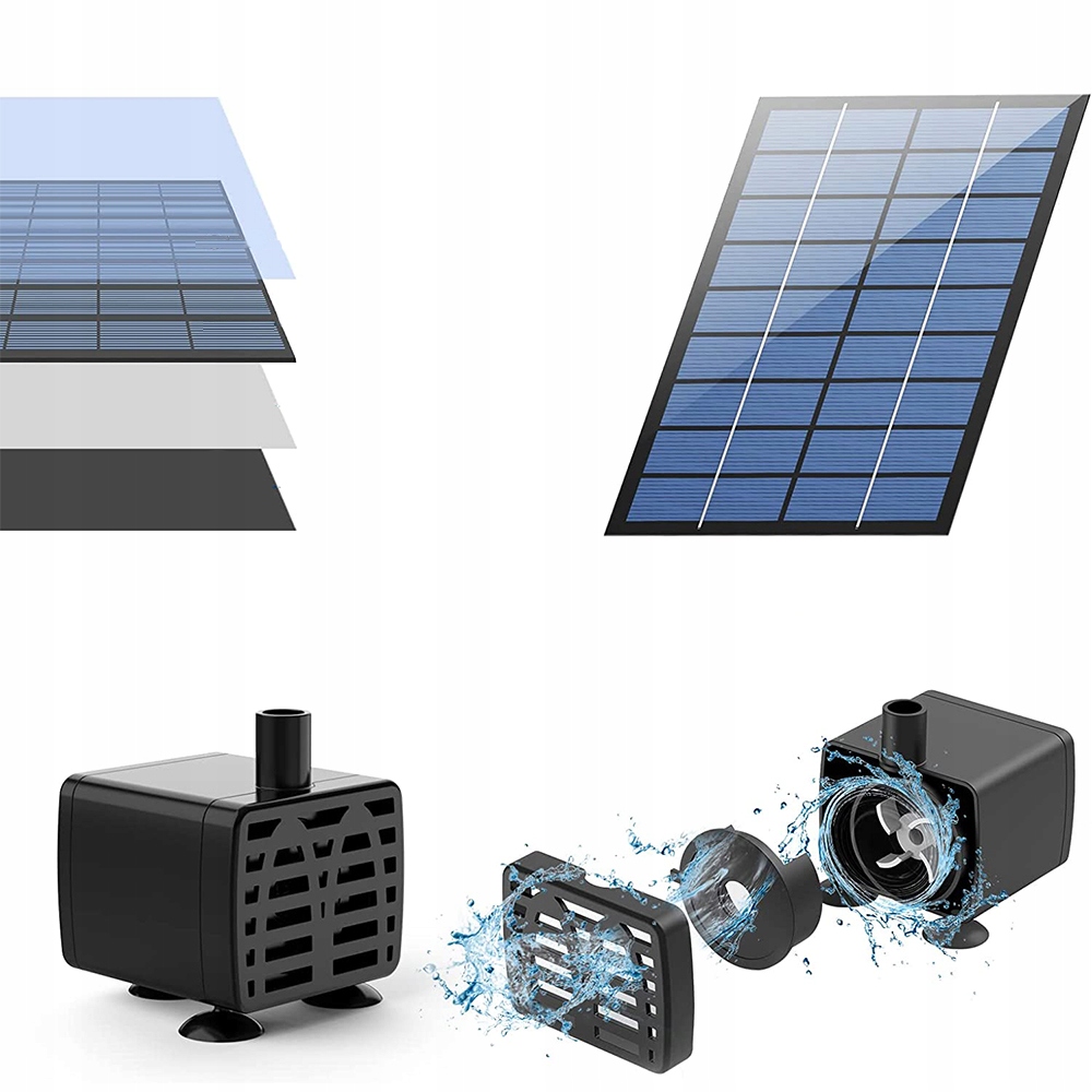 ✔️Простота в использовании: Независимый солнечный фонтан. Свободно перемещайтесь в разные места, без сложной установки и обслуживания, вы сможете наслаждаться интересной жизнью своего сада. Кабель между солнечной панелью и насосом достаточно длинный (3-метровый кабель), чтобы покрыть относительно большую площадь, не беспокоясь о том, что насос не будет работать в тени.