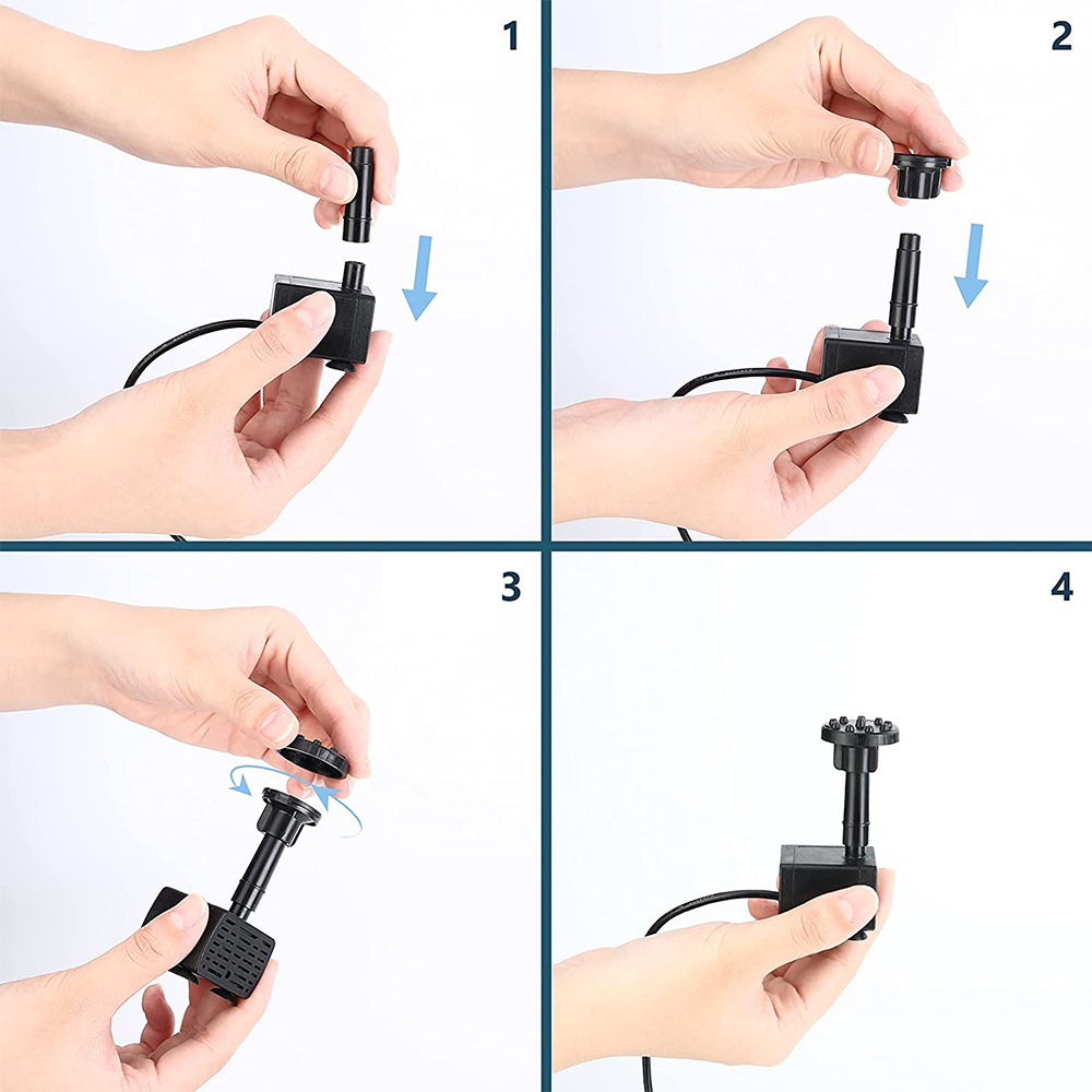 ⛲ 6 разных видов воды разбрызгиватели: 6 различных насадок могут удовлетворить ваши различные требования к высоте или форме водяного столба. Высоту можно регулировать, меняя форсунки, чтобы избежать выплескивания из бассейна. Распылительную головку можно легко заменить.