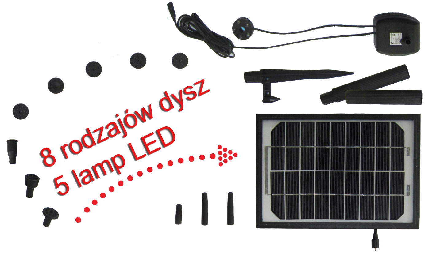 СОЛНЕЧНЫЙ НАСОС СО СВЕТОДИОДНОЙ ПОДСВЕТКОЙ + 5 насадок