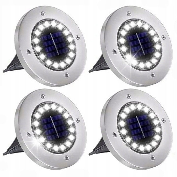 СОЛНЕЧНЫЙ НАЗЕМНЫЙ ФОНАРЬ 16 СВЕТОДИОДОВ САДОВЫЙ СТАЛЬ 4 ШТ. ХОЛОДНЫЙ БЕЛЫЙ