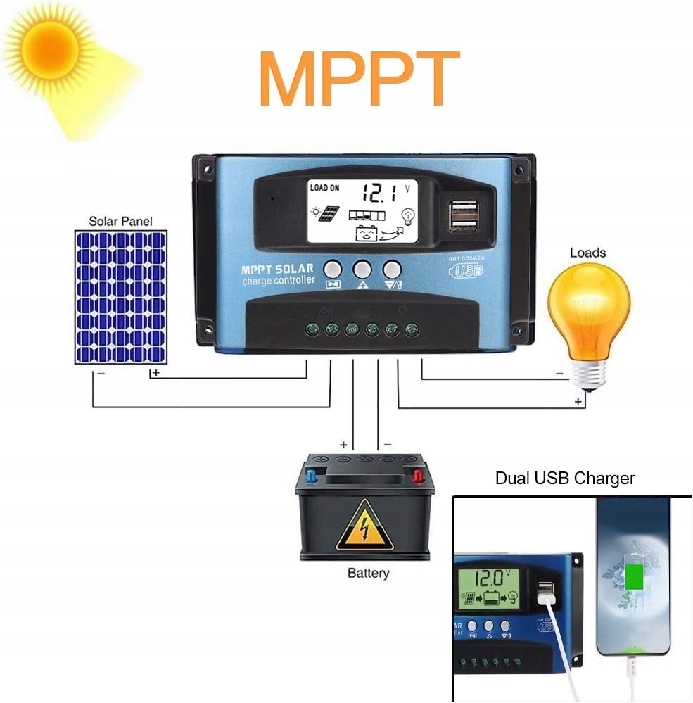 - [Функция отслеживания]: автоматическое регулирование фокусировки MPPT, высокая производительность зарядки, непрерывное распознавание во время зарядки, двухэтажная резкость. параметры. Двухэтажная змеиная цепь, режим нагрузки с высокой эффективностью, очень низкая нагревательная мощность.
