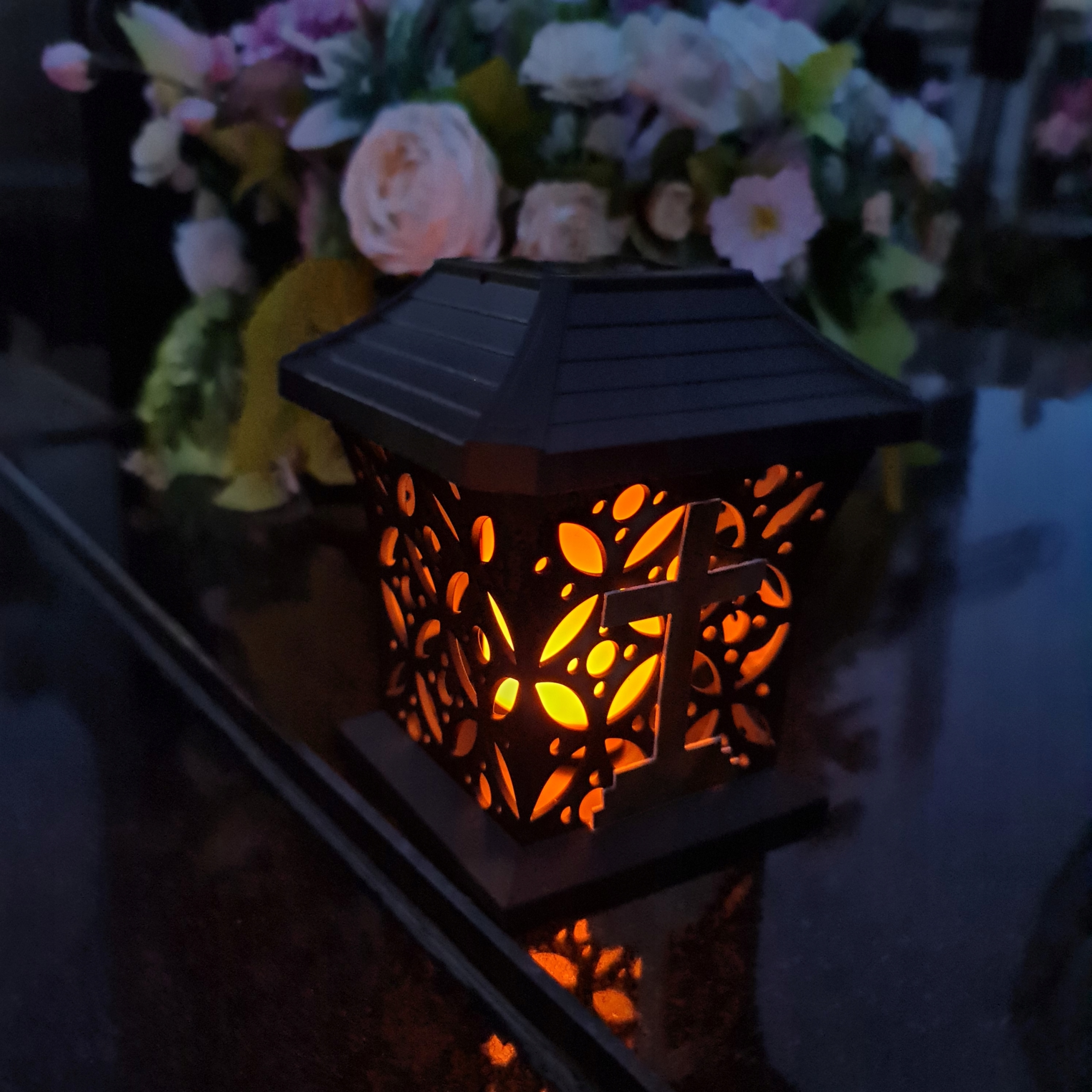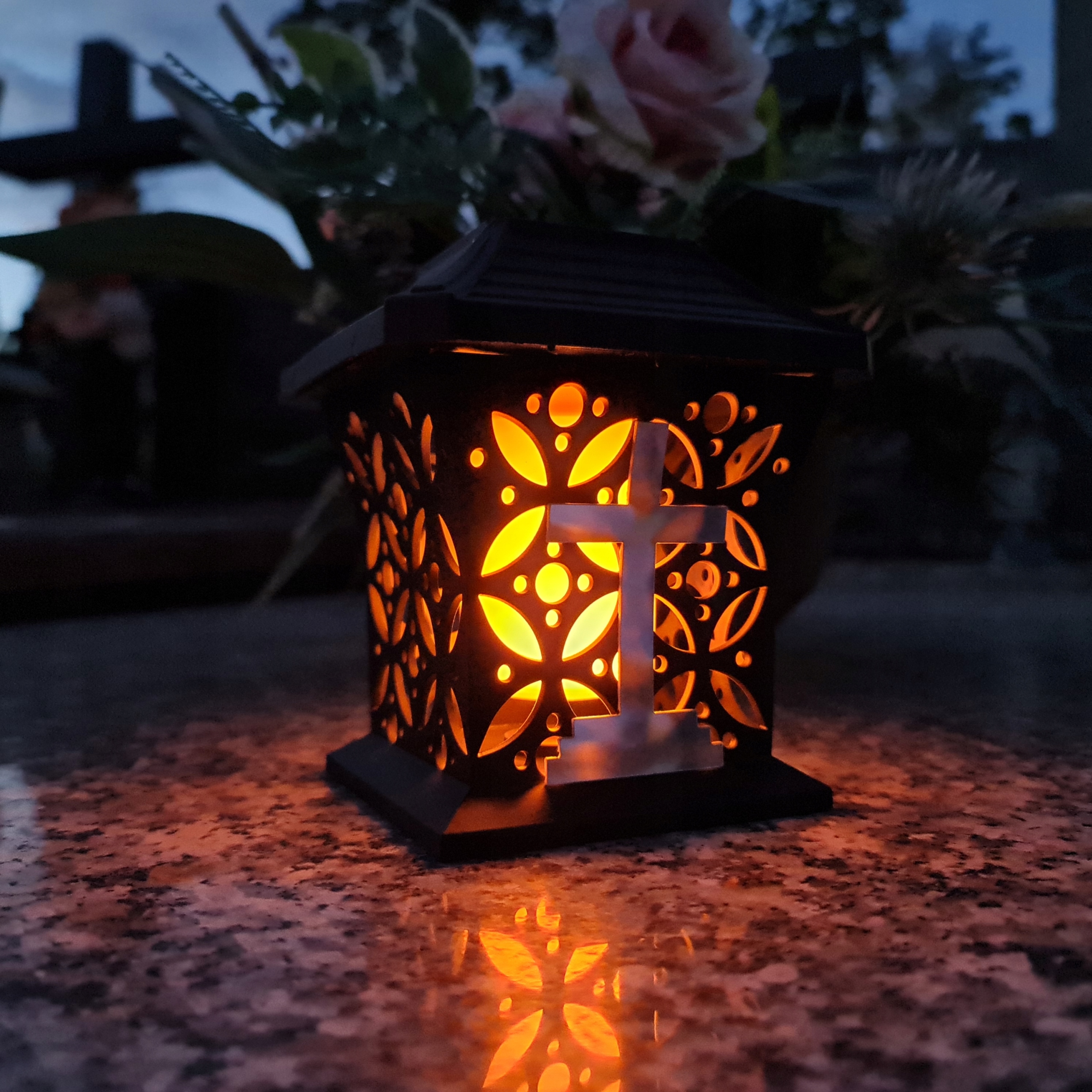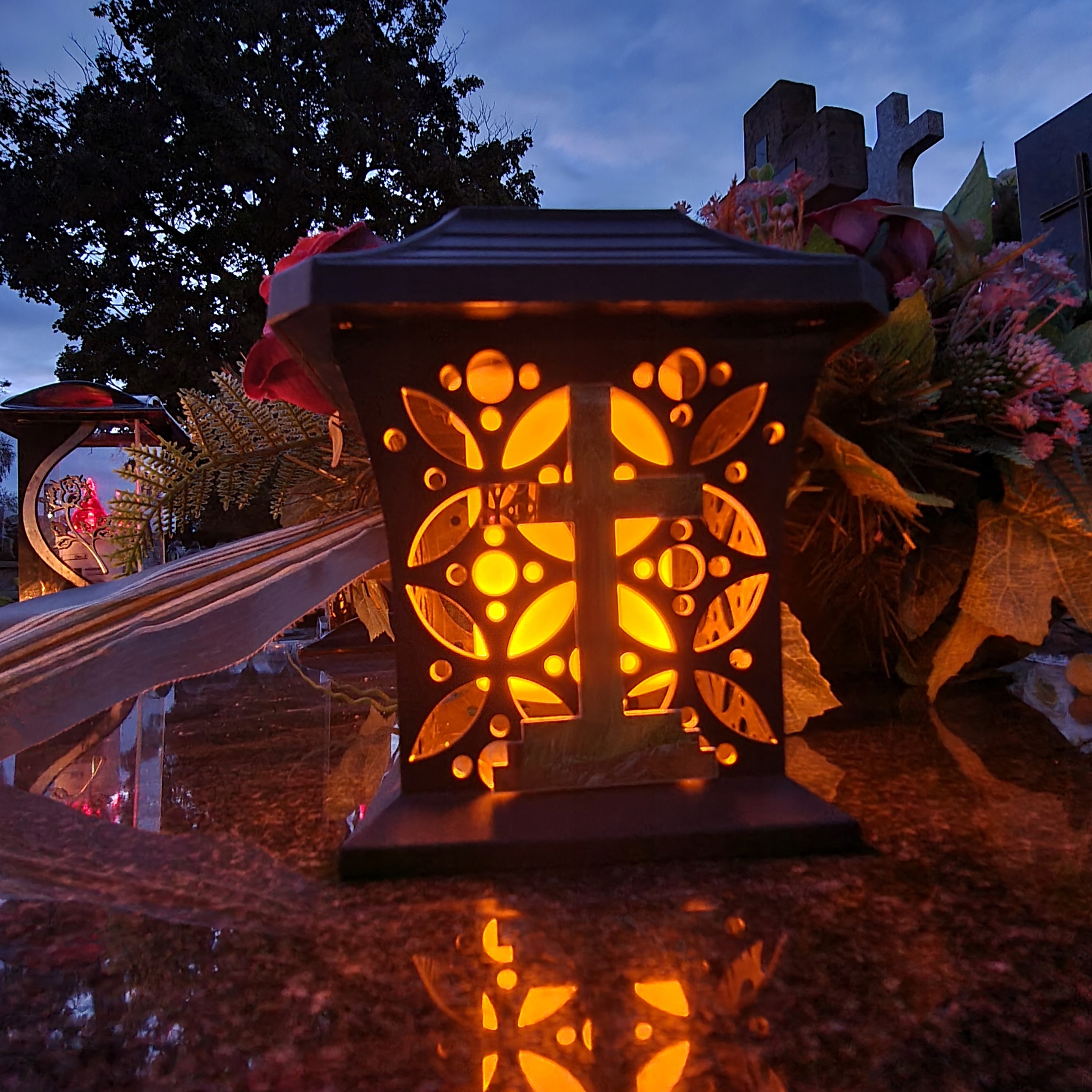 Солнечная лампа Znicz на современной могиле, вдохновленная классикой с золотым крестом