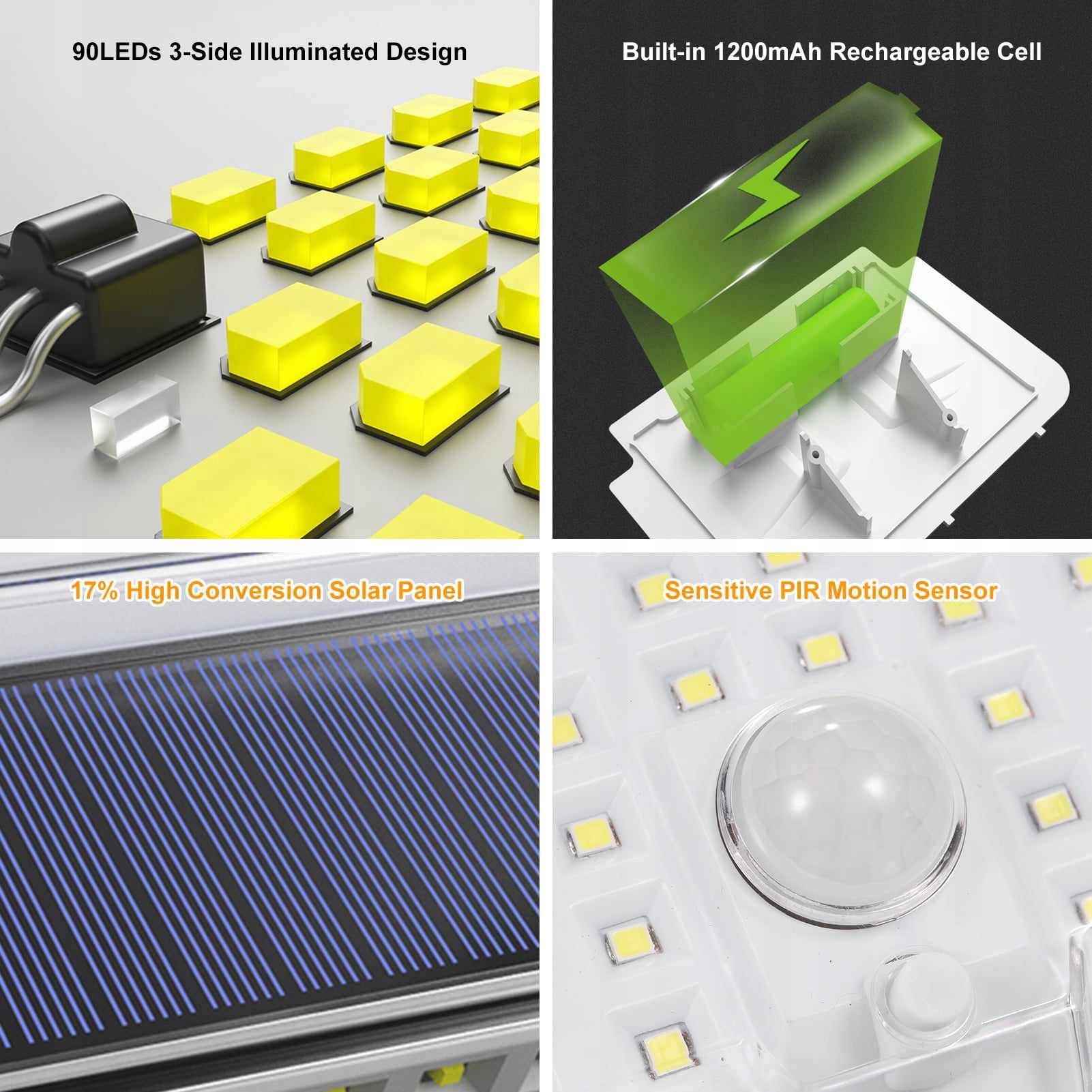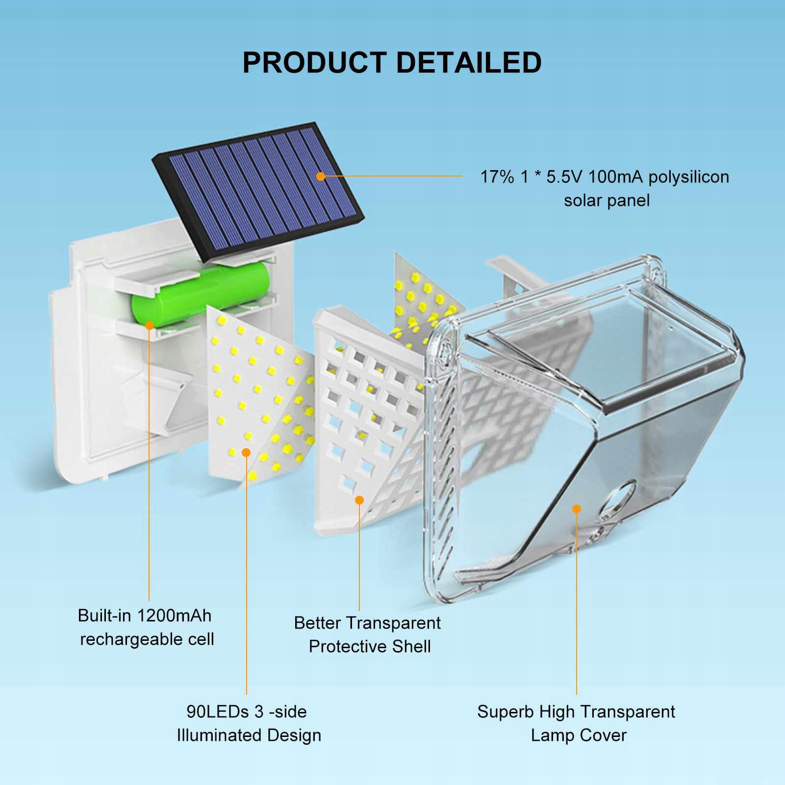 -Широкое применение: уличные солнечные фонари IP44, подходят для садов, заборов, дворов, подъездных дорожек, лестниц, наружных стен и т. д., теплые, устойчивые к атмосферным воздействиям, не нужно беспокоиться о внешних повреждениях.