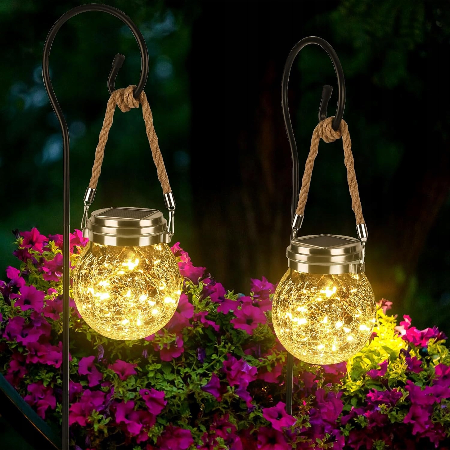 СОНЯЧНИЙ СВІТИЛЬНИК САДОВИЙ, ПІДВІСНИЙ СКЛЯНИЙ СВІТИЛЬНИК, ДЕКОРАТИВНИЙ СВІТИЛЬНИК, 2 ШТ.