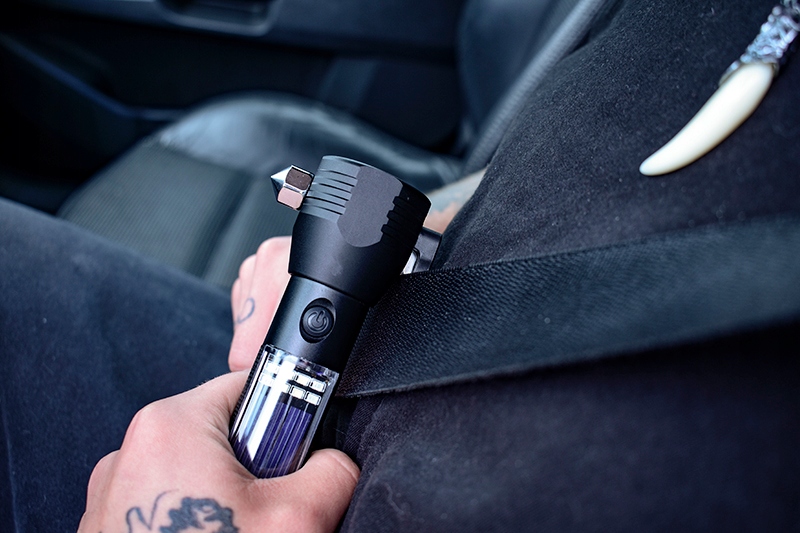Стоит иметь в автомобиле инструмент, который сможет спасти вам жизнь в критической ситуации. Ремни безопасности часто защищают водителя и пассажиров от смерти, но случаются аварии, в которых люди оказываются зажатыми в автомобиле из-за заклинивания механизма ремня безопасности. В фонарик встроен острый нож, который легко разрежет ремень и позволит вам выбраться наружу.