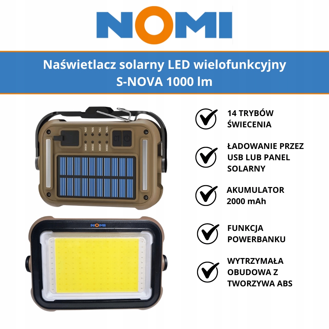 МНОГОФУНКЦИОНАЛЬНЫЙ СВЕТОДИОДНЫЙ СОЛНЕЧНЫЙ ПРОЖЕКТОР S-NOVA 1000люм NOMI