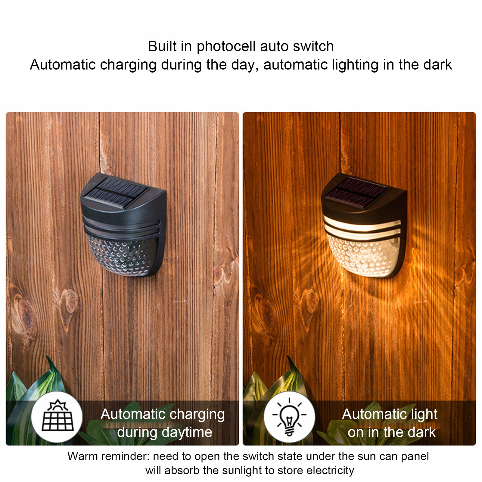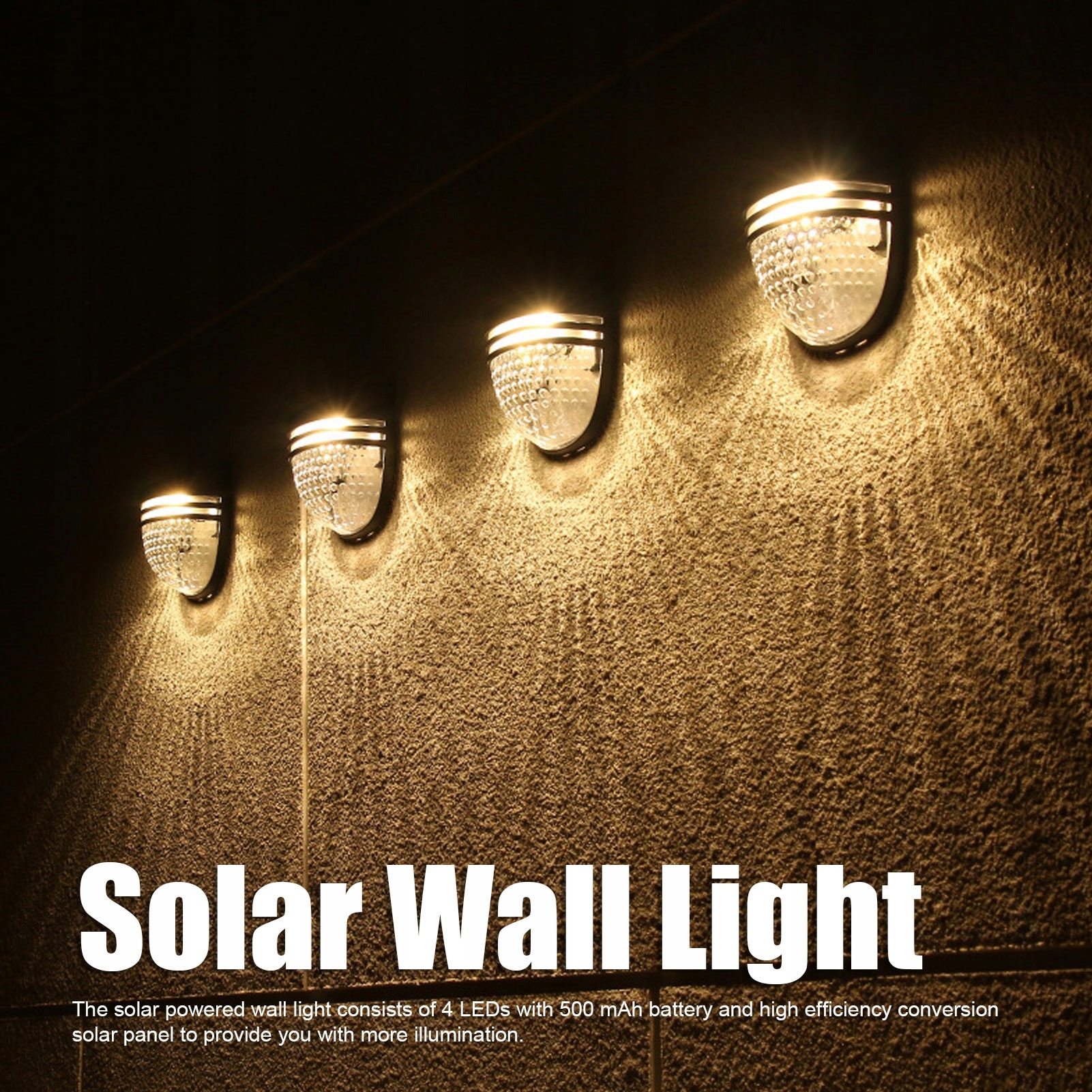 Особенность:1. УВЕЛИЧЕНИЕ ЯРКОСТИ: Настенный светильник на солнечной энергии состоит из 4 светодиодных фонарей с аккумулятором емкостью 500 мАч и высокоэффективной солнечной панели для большего освещения.