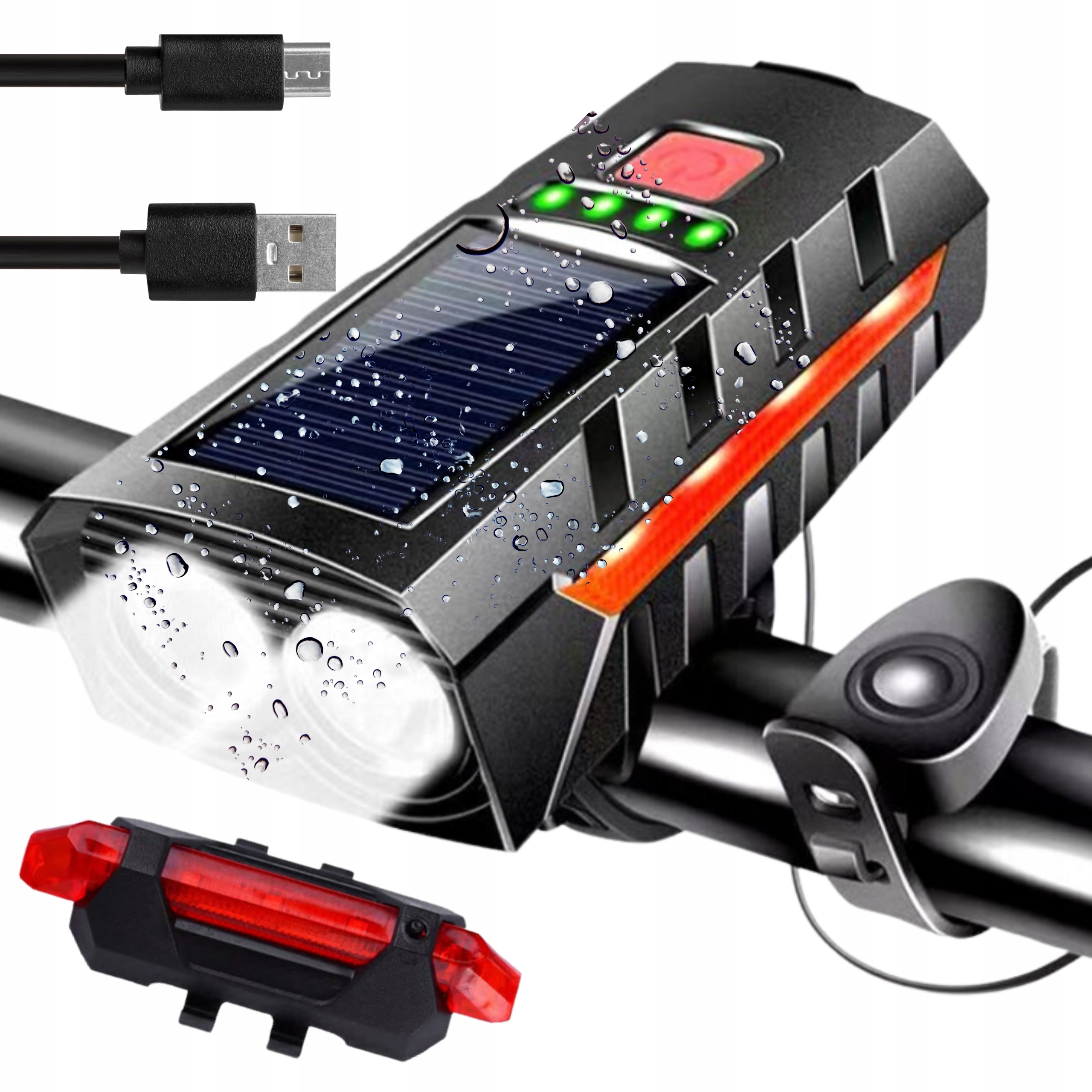 СВЕТОДИОДНАЯ ВЕЛОСИПЕДНАЯ ФАРА НА СОЛНЕЧНОЙ СВЕТОДИОДНОЙ ФАРНЕ НА РУЛЕ И ЗАДНЕМ ЗВОНКЕ