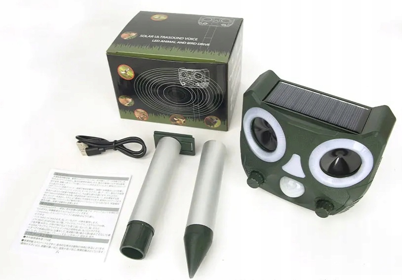Солнечная энергия: отпугиватель оснащен высокоэффективной солнечной панелью и перезаряжается. днем, обеспечивая бесперебойную защиту в ночное время. Кроме того, он оснащен USB-портом для зарядки на случай ограниченного солнечного света.